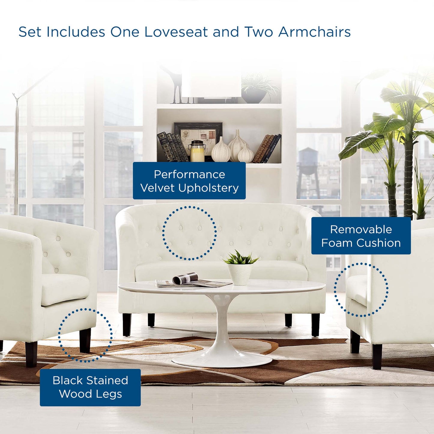 Prospect 3 Piece Performance Velvet Loveseat and Armchair Set