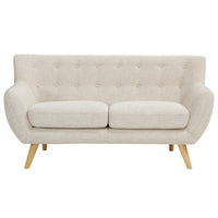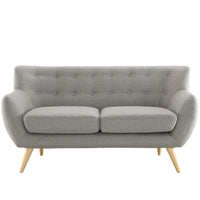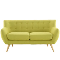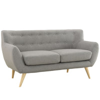 Take notice and engage your sensibilities with this plush dual cushion, organically shaped loveseat. Remark is gracefully positioned on solid natural wood dowel legs designed according to mid-century sentiments. Whether settling in with coffee and brunch, or entering a spirited discussion with friends, Remark’s polyester upholstery, two rows of finely stitched back seat buttons, and organic form ensure an eye-catching appeal at every turn. Bring depth and modernity to your contemporary living room or lounge area with the Remark mid-century modern style loveseat.