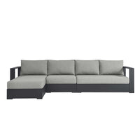Enliven your alfresco spaces with the Tahoe Aluminum Outdoor Patio 3-Piece Sectional Sofa. This modern sectional sofa is constructed with well-crafted, durable powder-coated aluminum, dispensing contemporary elegance in your outdoor lounge spaces. Its dense foam padding ensures sustained comfort, making it ideal for poolside lounging or as outdoor deck furniture, complete with UV and water-resistant fabric-covered seats and backrests. The cushion covers are removable for easy machine washing. Part of a modular outdoor furniture collection, this 3-Piece sectional sofa offers adaptability and style while entertaining or relaxing. The entire Tahoe aluminum patio furniture set features non-marking foot glides to protect your deck or patio floor and comes with easy-to-follow assembly instructions. Set Includes: 1 Right-Facing Loveseat (Weight Capacity: 661 lbs.), 1 Armless Patio Chair (Weight Capacity: 331 lbs.), 1 Left-Facing Chaise (Weight Capacity: 661 lbs.)