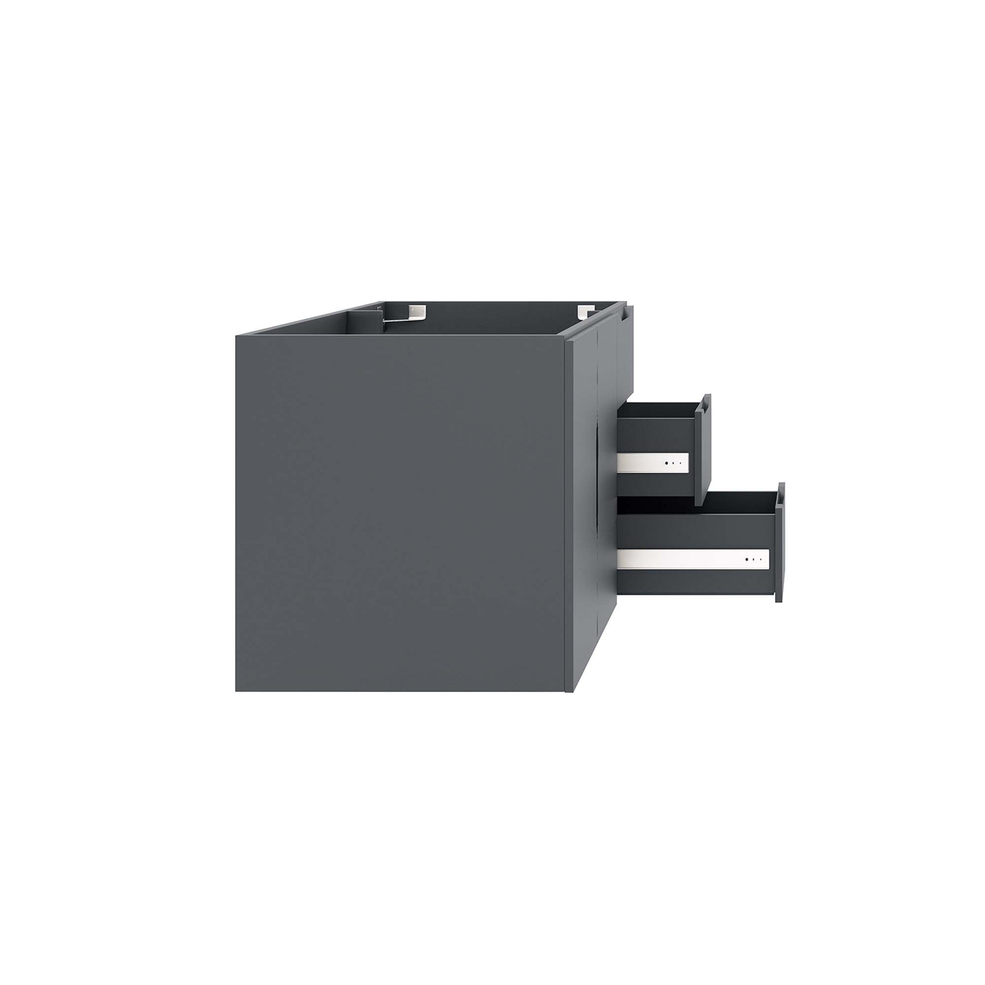 Energize your bathroom space with the modern design of the Vitality 36" Wall-Mount Bathroom Vanity. Boasting a sleek, clean-lined silhouette, this vanity is durably crafted with particleboard and MDF with a melamine finish. This vanity features a wall-mount design and is complete with ample storage space for all your bathroom essentials with two spacious drawers and an under-sink storage area behind two soft-close doors. This vanity boasts an open back design to accommodate plumbing. Sink basin and fixtures not included. Assembly required.