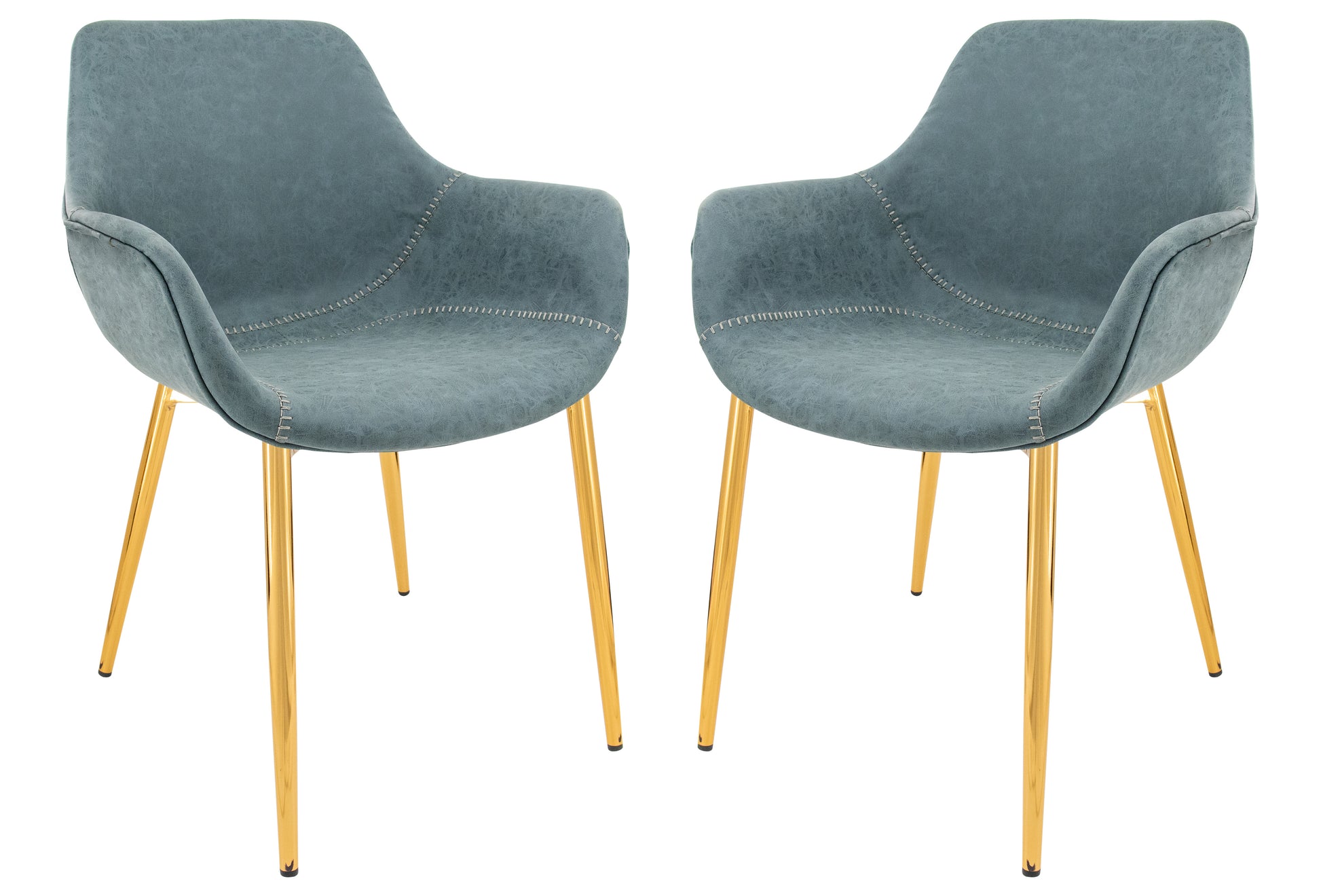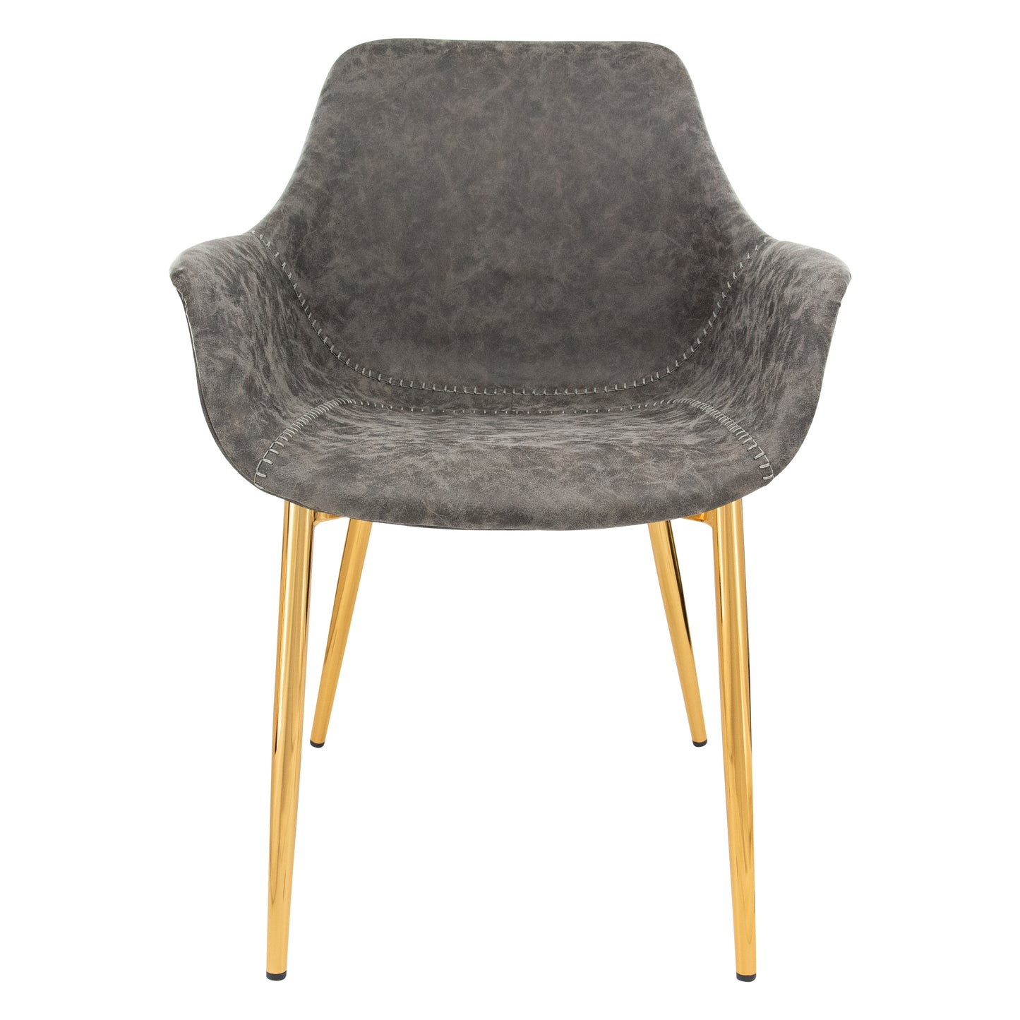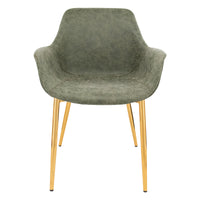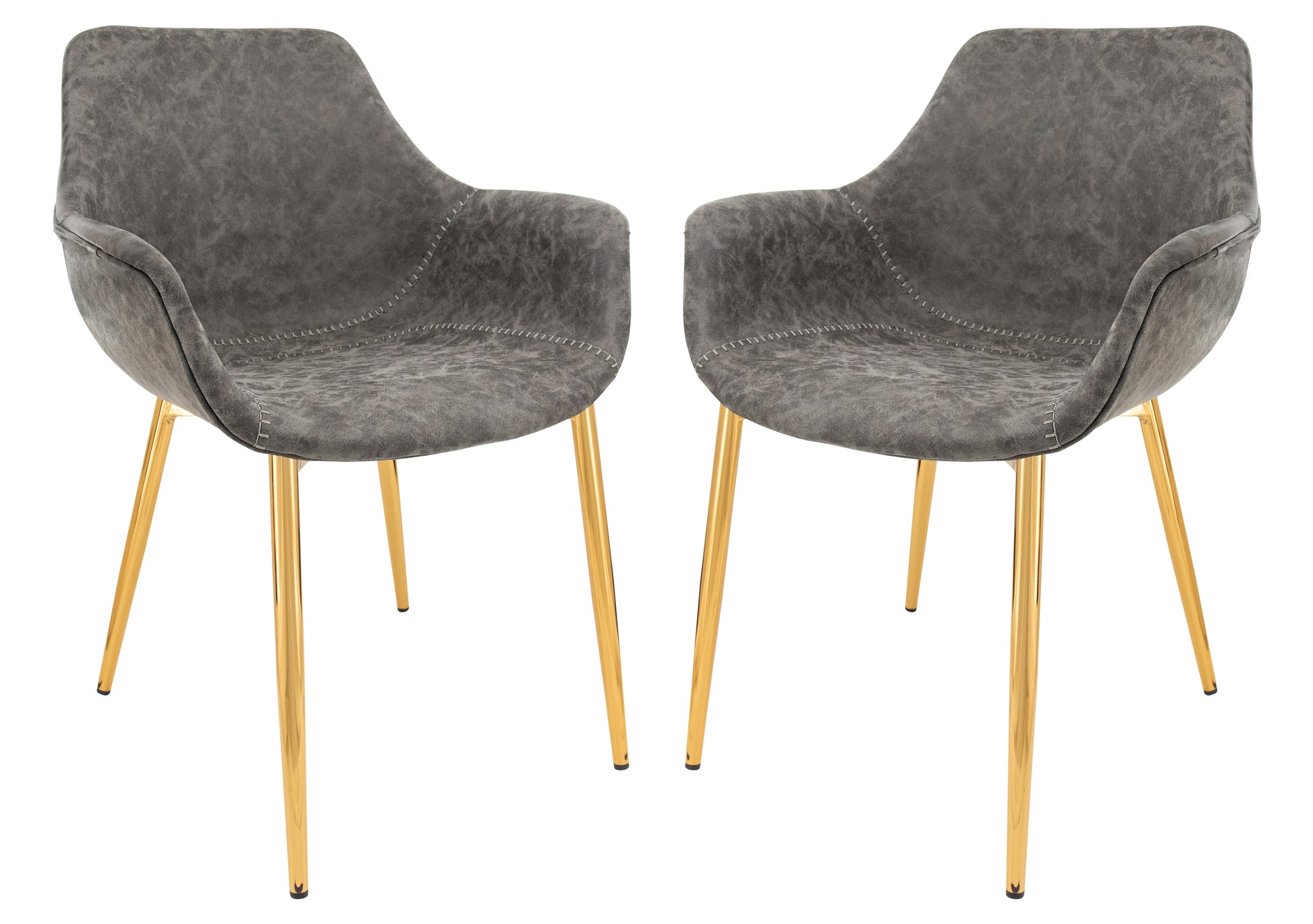 Markley Modern Leather Dining Arm Chair With Gold Metal Legs Set of 2