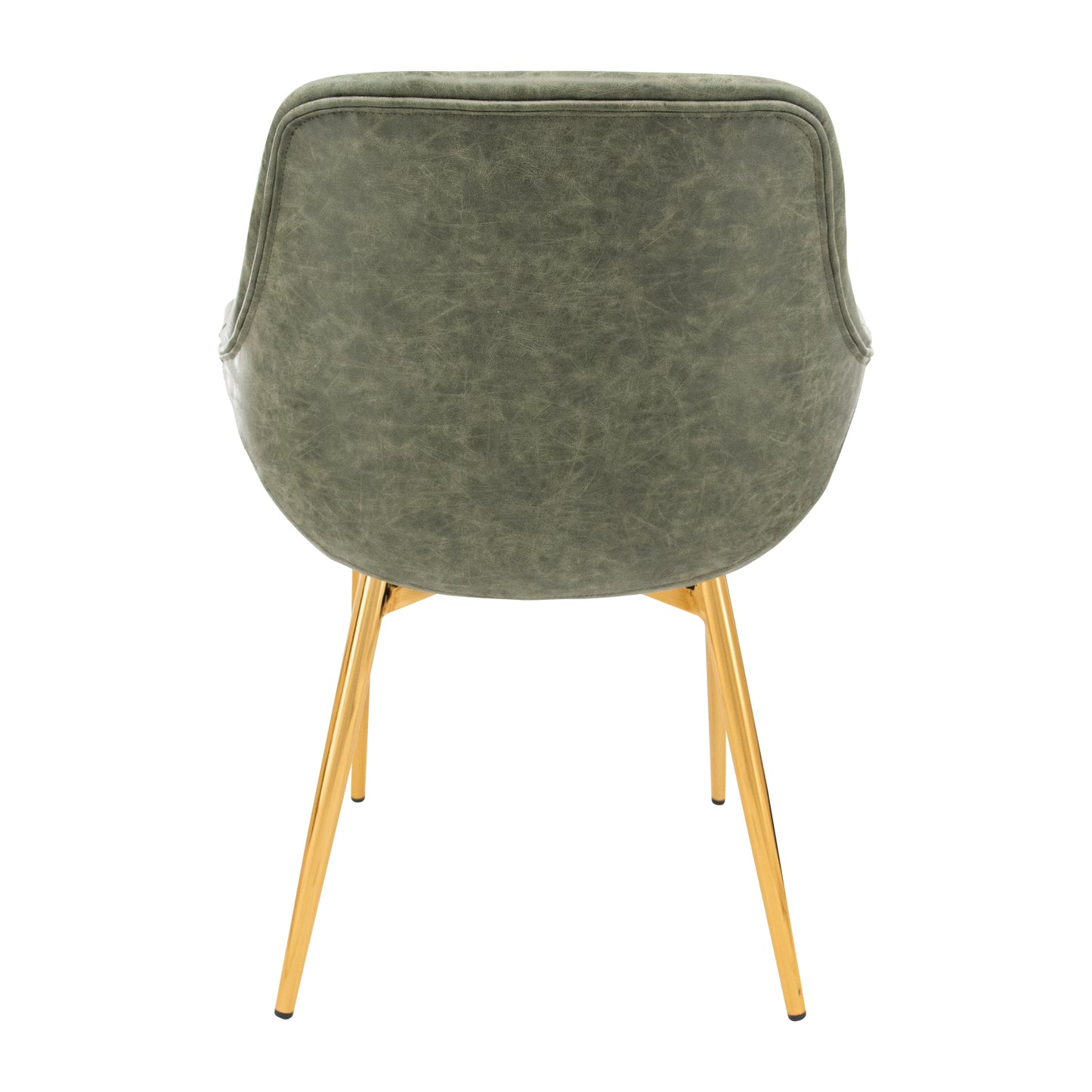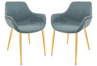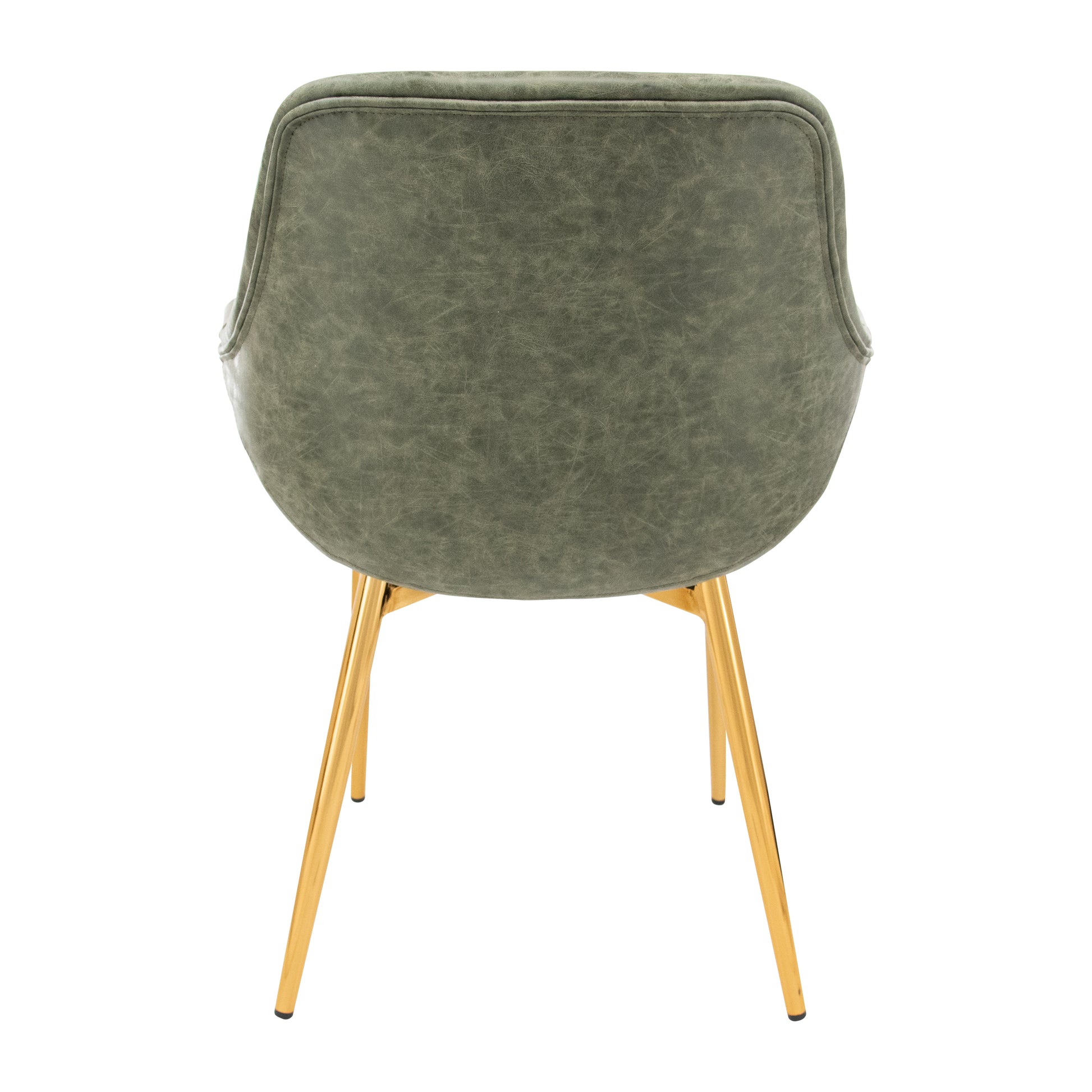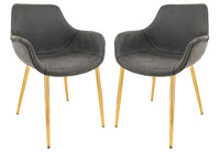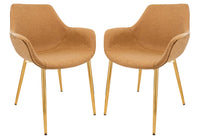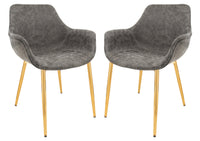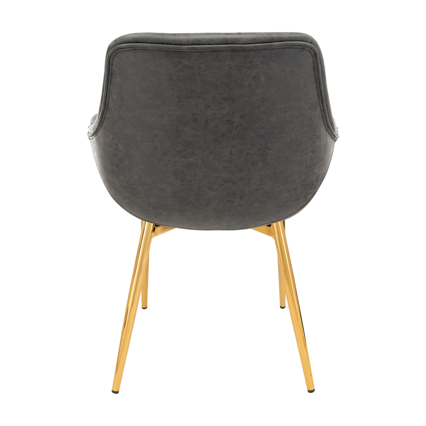 Markley Modern Leather Dining Arm Chair With Gold Metal Legs Set of 2