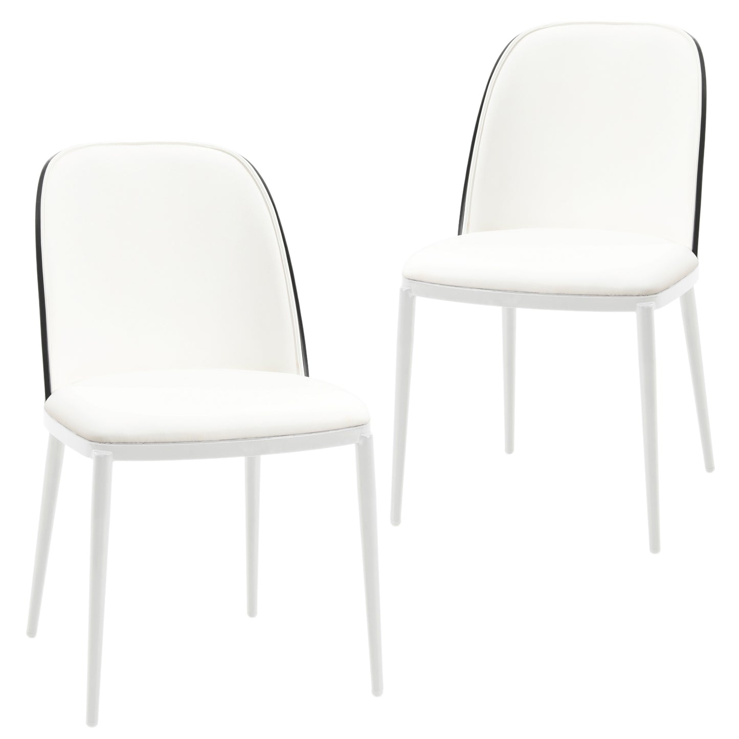 Tule Mid-Century Modern Dining Side Chair with Leather Seat and White Powder-Coated Steel Frame, Set of 2