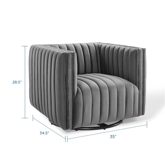 Conjure Channel Tufted Performance Velvet Swivel Armchair