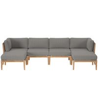Clearwater Outdoor Patio Teak Wood 6-Piece Sectional Sofa