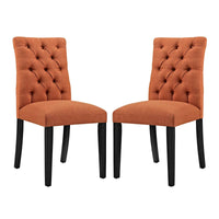 • Bestow elegance with the Duchess Dining Chair. Chic and luxurious, Duchess features a stylish curvy form, richly tufted button back, dense foam padding, fine fabric upholstery, and wood legs topped with non-marking foot caps. Resonate grace and charm with a dining chair perfect for the modern home.