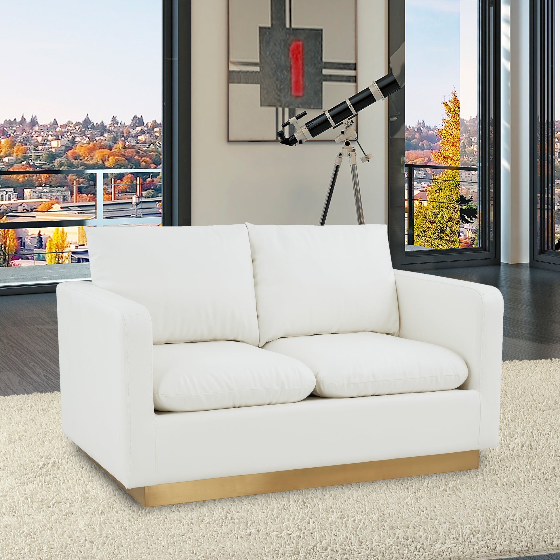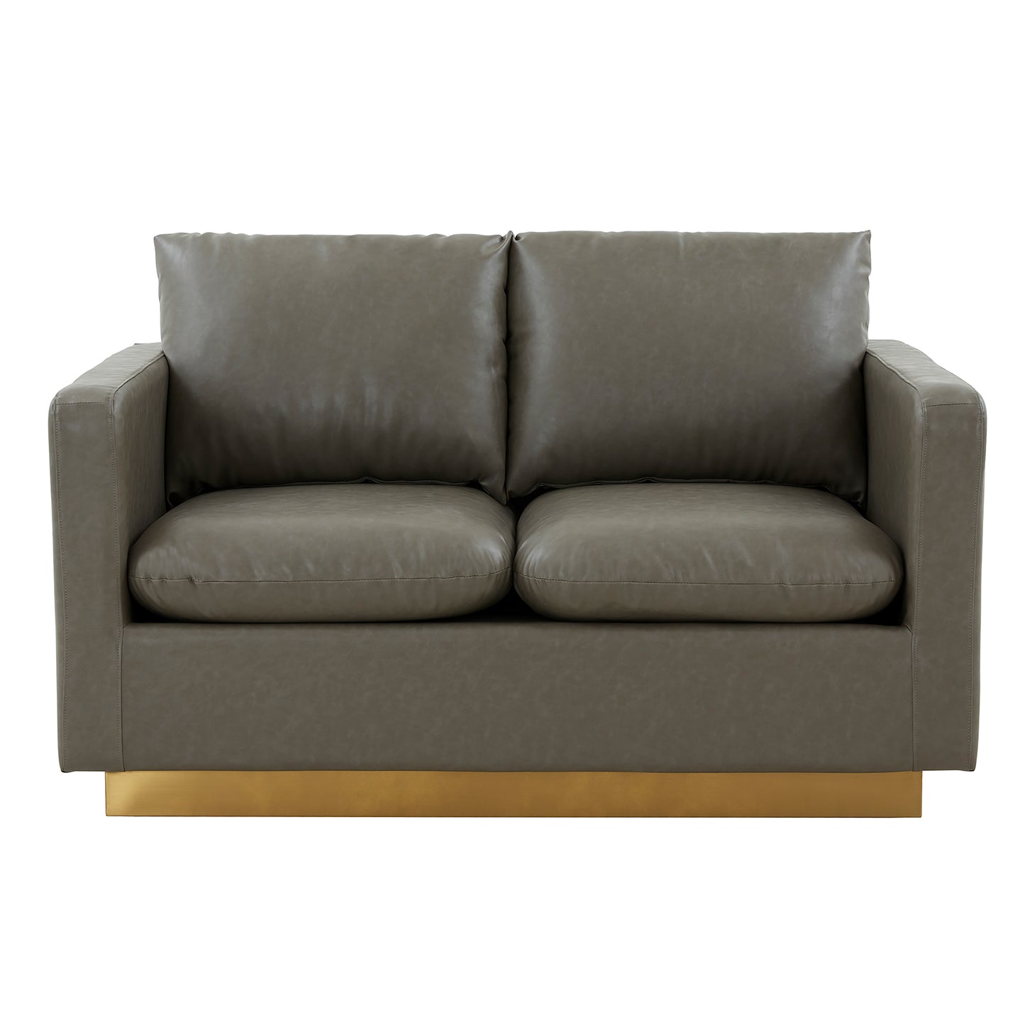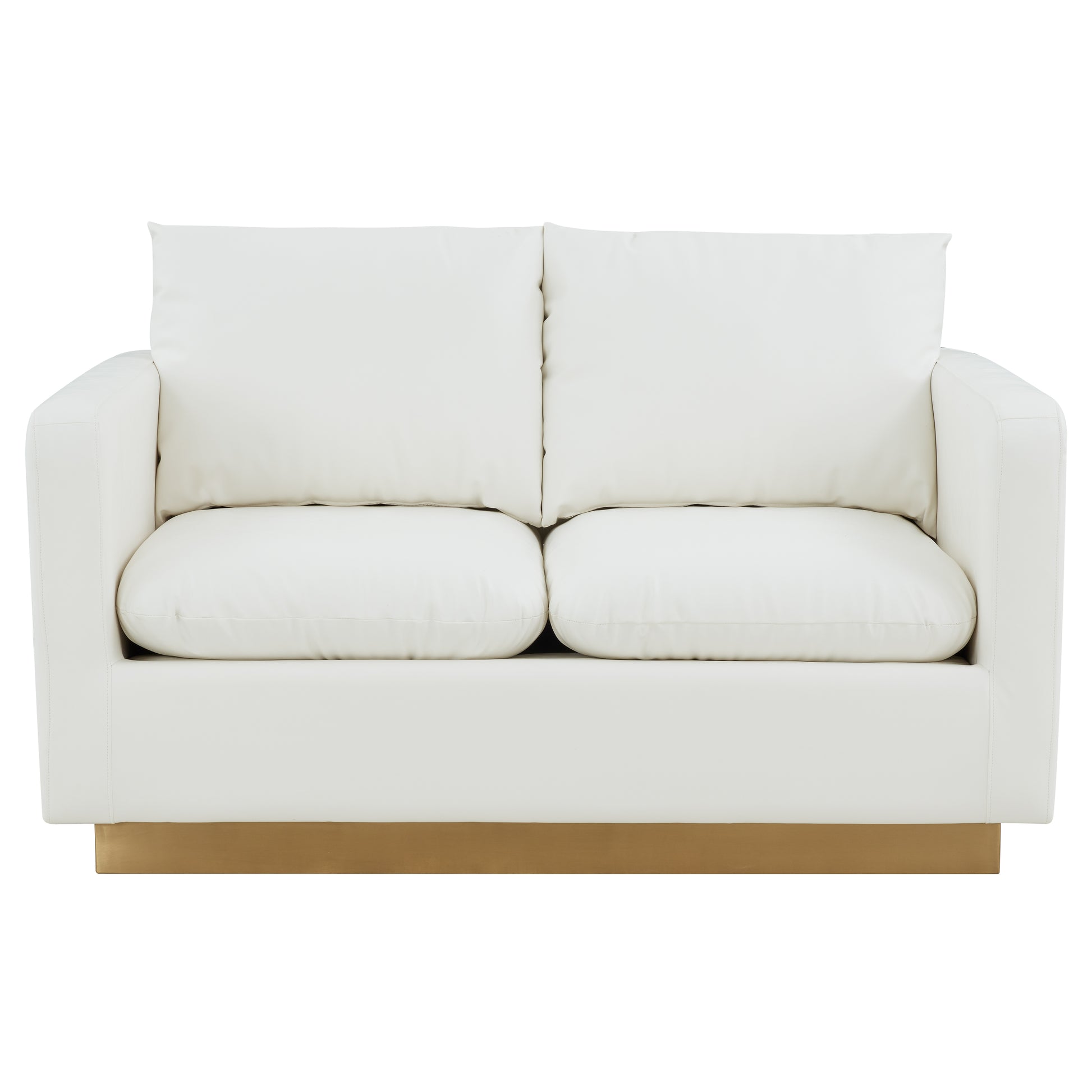 Elvira Mid-Century Leather Loveseat - Gold Frame