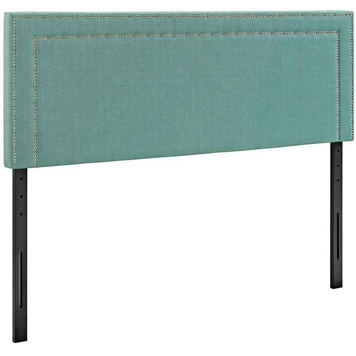 • Adorn your bed of choice with the elegantly designed Jasmine Headboard in Fabric. Designed with two rows of silver accented nail button trim, Jasmine comes finely upholstered in polyester, has a solid wood frame, adjustable black coated metal legs, and dense foam padding for ultimate support. Rejoice with a contemporary design that admirably compliments your bedroom decor. Fully Compatible with Rose, Cherry and Troy Platform Bed Frames.