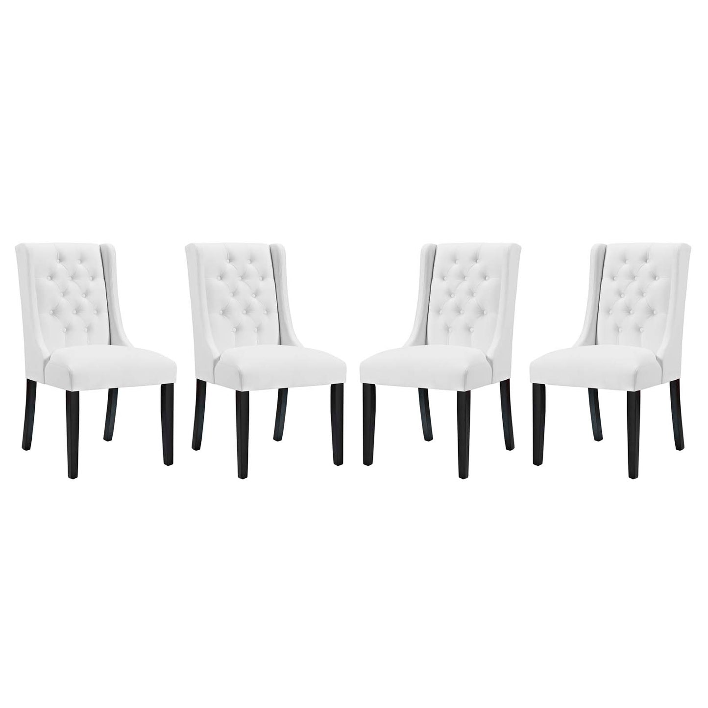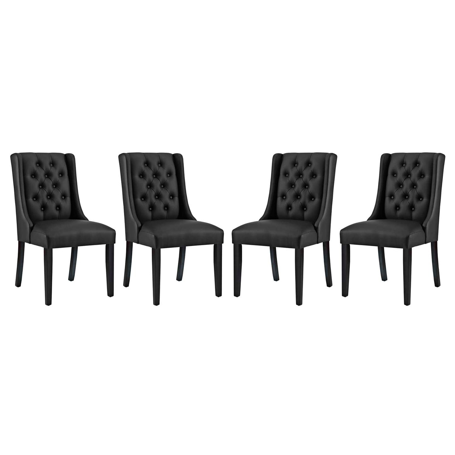 Bestow splendor with Baronet. Charm and elegance adorn this luxurious button tufted dining chair complete with sleek curves and dignified form. Featuring dense foam padding, fine vinyl upholstery, a solid wood frame, and non-marking foot glides, Baronet is a stylish dining chair perfect for the modern home.