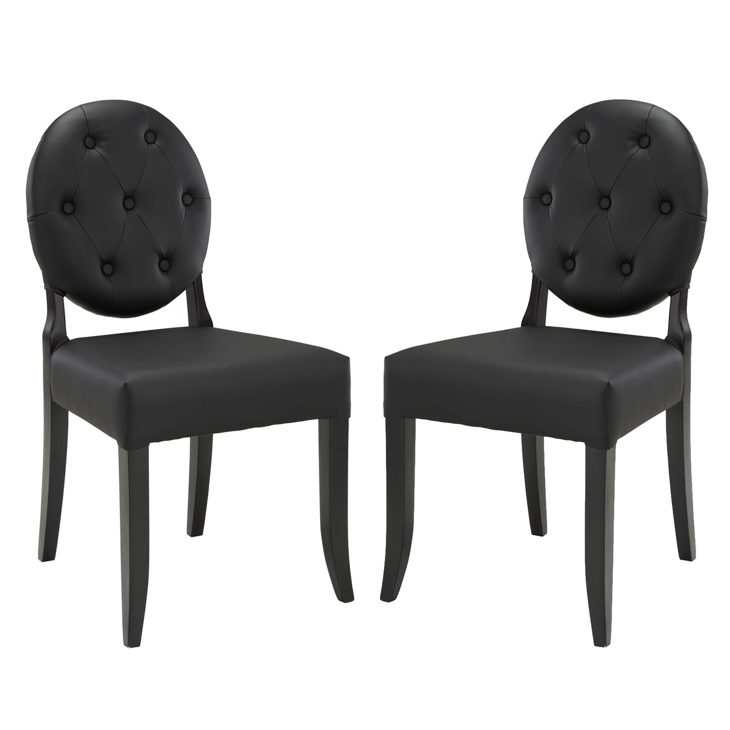 Playing off the whimsical spatial elements of the Button Chair, this buttoned vinyl installment gives transparency a home. Bring light-filled moments inward with an inner sense of laughter and delight. With its padded black vinyl seating and black legs, settle fancy as you uncover yet greater horizons.