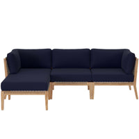 Clearwater Outdoor Patio Teak Wood 4-Piece Sectional Sofa