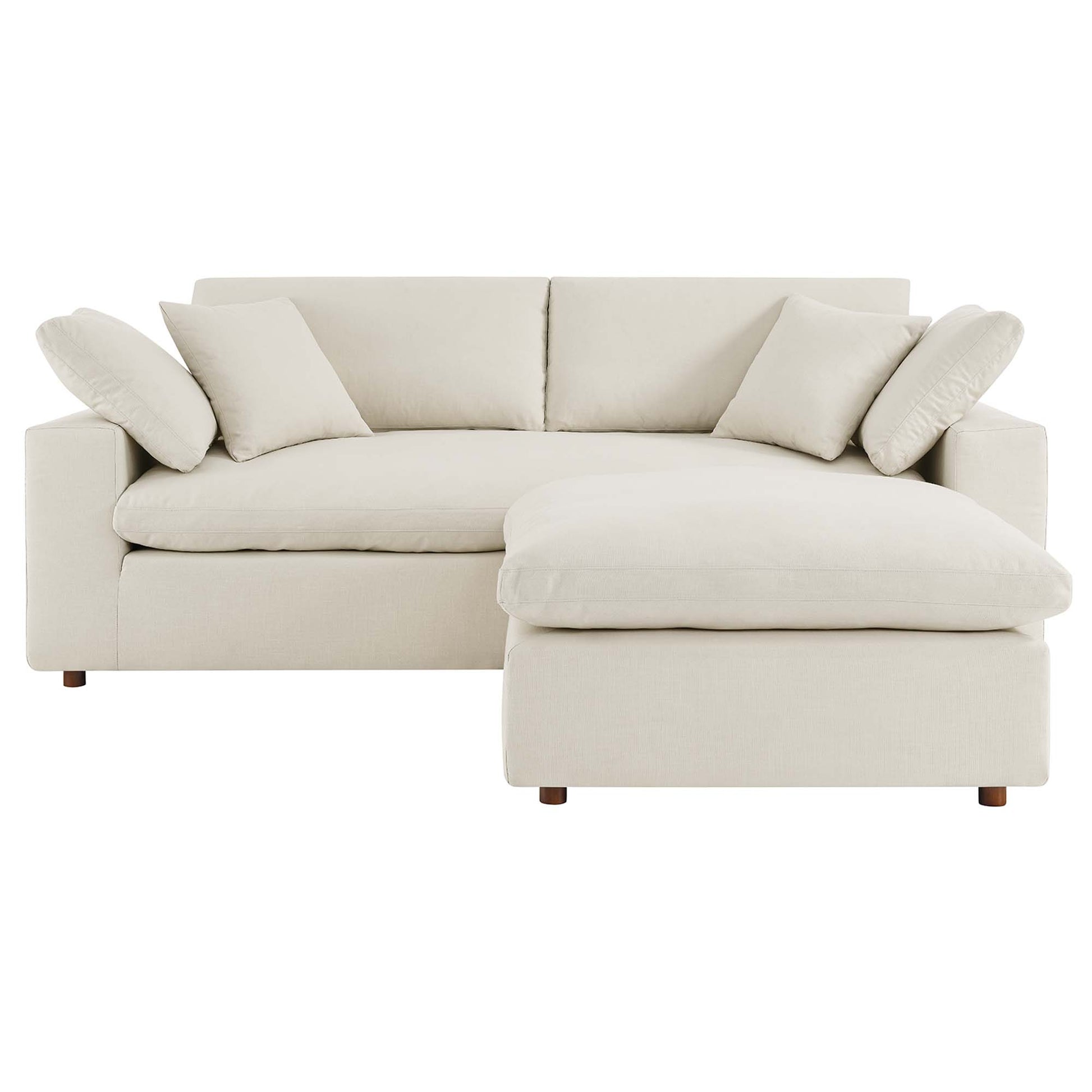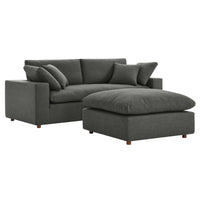 A haven for cozy relaxation, Commix features plush comfort, clean-lined design, and a spacious profile, that makes an attractive statement in the modern home. Upholstered in polyester fabric that grants a luxe linen texture, this contemporary sectional sofa comes with solid wood construction and cotton and down cushions for a luxurious sink-in feel. Commix comes with generously padded down feather and cotton cushions, and padded foam bases, making this sectional sofa collection perfect for the living room, family room, or game room. Made for sprawling out or curling up, Commix beckons you and guests to sit and stay a while. Includes plastic foot glides. Corner piece includes two back pillows and a throw pillow. Sofa Weight Capacity: 992 lbs. Ottoman Weight Capacity: 331 lbs.