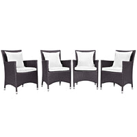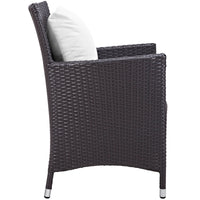 Gather stages of sensitivity with the Convene Outdoor Sectional series. Made with a synthetic rattan weave and a powder-coated aluminum frame, Convene is a versatile outdoor collection that shifts and combines according to the spontaneous needs of the moment. Outfitted with all-weather fabric cushions, leave a positive impression on friends and family while enhancing your patio, backyard, or poolside repast in this series of palpable distinction. This installment of the series is an Outdoor Patio Arm Chair Set.