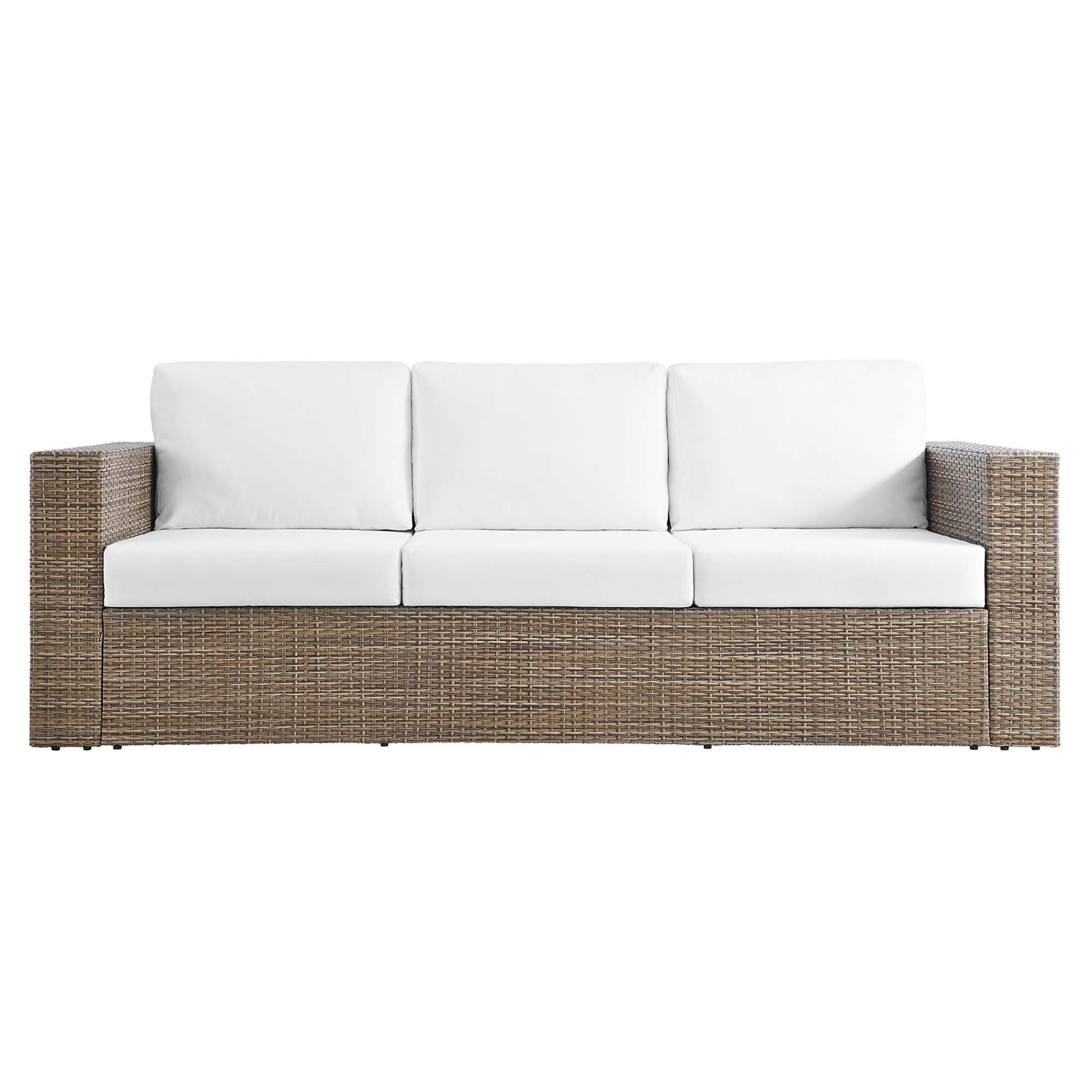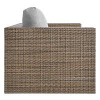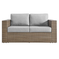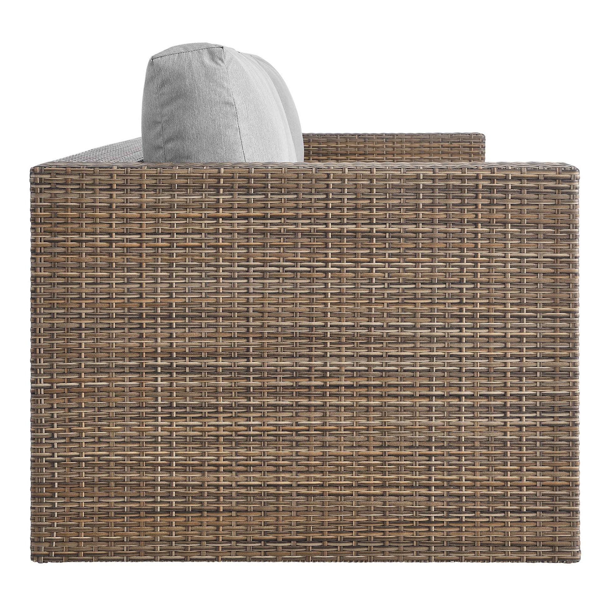 Surround yourself with warm weather and good company with the Convene Outdoor Collection. Made with synthetic rattan weave and powder-coated aluminum frames, this outdoor patio furniture set leaves a positive impression on your guests while enhancing your patio, backyard, porch, or poolside with modern style and appreciated texture. A lasting all-weather addition to your outdoor space, this patio furniture set is complete with dense foam padded cushions with water-resistant zippered covers and non-marking foot pads to protect your flooring. The outdoor side table features an easy-to-clean tempered glass top. Assembly required. Easy to follow instructions included. Set Includes: 1 Sofa, 1 Loveseat, 2 Side Tables, 1 Coffee Table