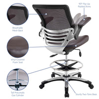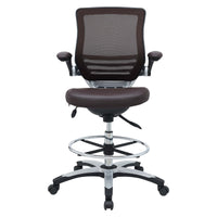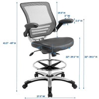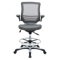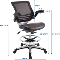 Welcome to a new era in functional comfort. The Edge Drafting Stool implements cutting edge ergonomics to deliver a comprehensive seating experience. Edge features a breathable mesh back for lower back lumbar support, padded waterfall vinyl seat to ease pain and pressure around your thighs, flip-up padded arms, an extra tall gas cylinder with a footring, and it securely locks in place with a user-friendly seat tilt plus tension control knob. Edge is a progressively minded drafting stool perfect for school, work, or home use.