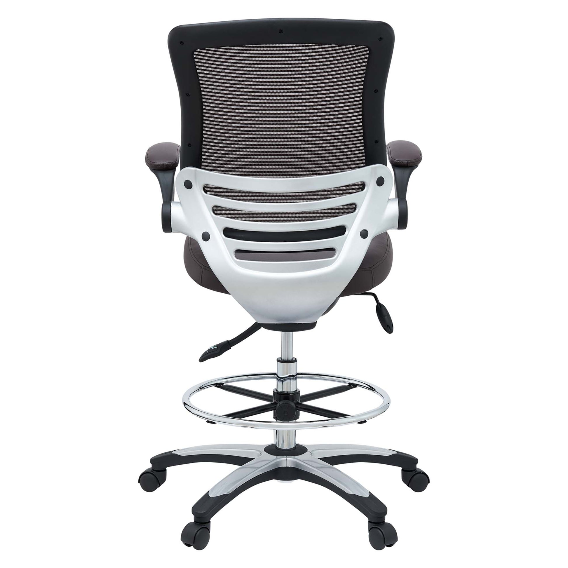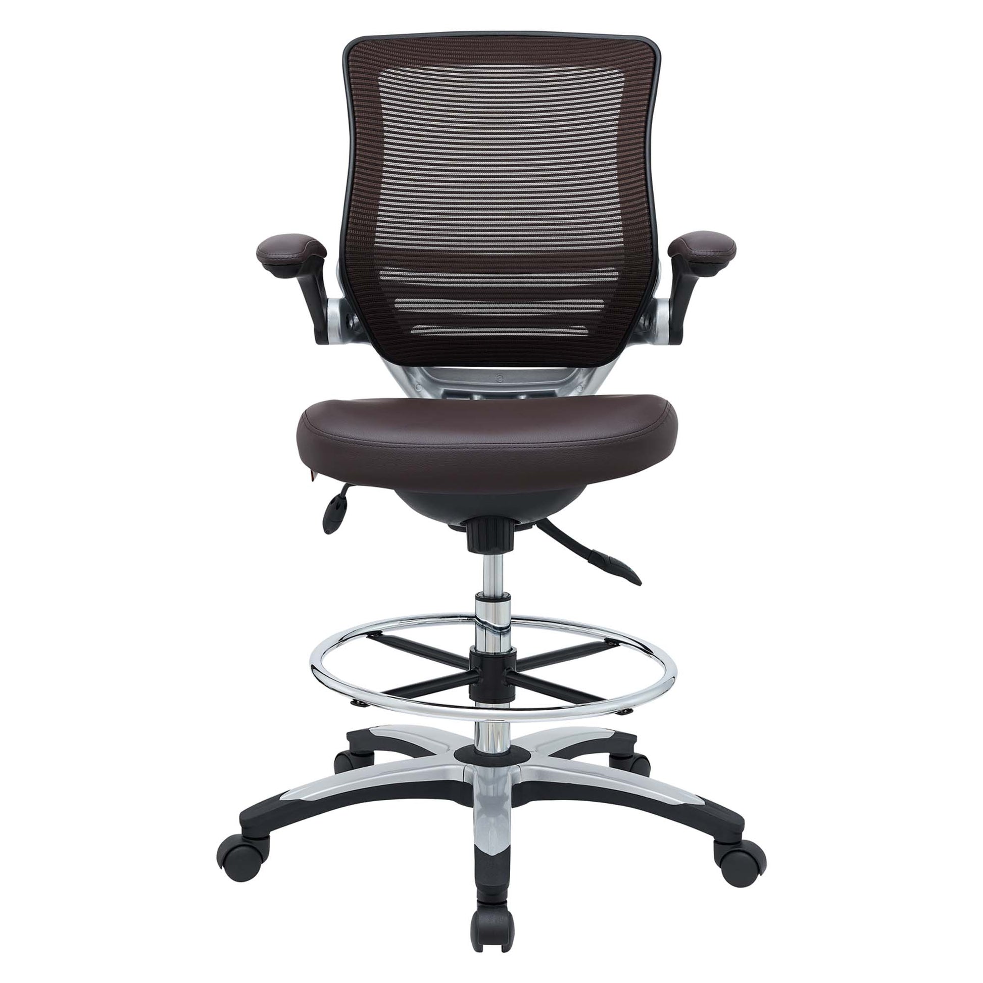 One - Edge Office Drafting Chair with Foot Ring, Mesh Back and Black Leatherette Seat