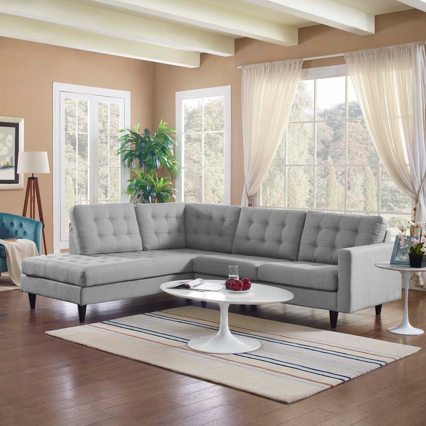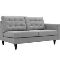 End the rule of unjust sovereignties that wage a useless war for your interiors. Empress Button Tufted Upholstered Fabric Sectional Sofa Set leaves the would-be heiress of holistic furnishings in the dust with a design that rivals any competitor. Empress is a 2 piece left facing bumper sectional sofa set heralded with deeply tufted buttons, plush cushions, and armrests that convey that perfect air of nobility. The solid wood legs come with plastic glides to prevent floor scratching, and support the solidly constructed wood frame of this sectional sofa set. Dense foam padding create a luxe seating experience while the durable and stain-resistant fine fabric upholstery leaves the recipients feeling richly rewarded. Maximum Weight Capacity: 660 lbs.