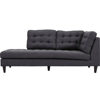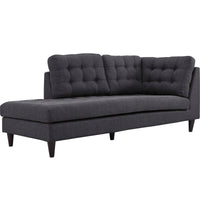 End the rule of unjust sovereignties that wage a useless war for your interiors. Empress leaves the would-be heiress of holistic furnishings in the dust with a design that rivals any competitor. Empress is heralded with deeply tufted buttons, plush cushions, and armrests that convey that perfect air of nobility. The solid wood legs come with plastic glides to prevent floor scratching, and the fine fabric upholstery leaves the recipients feeling richly rewarded.
