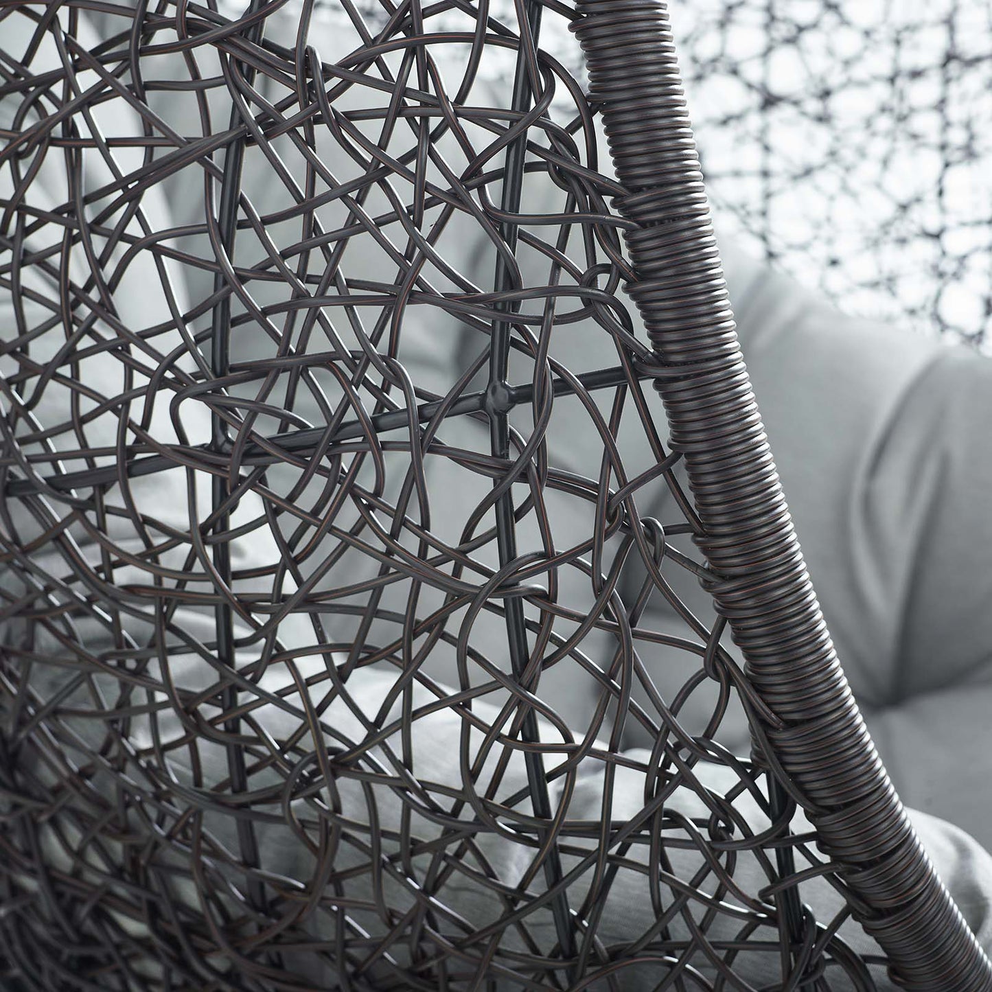 Escape to an exotic island of serenity with the Encase Outdoor Patio Swing Chair. Made with a luxurious synthetic rattan weave and plush all-weather fabric cushion, Encase Outdoor Hanging Chair makes it easy to immerse yourself in a good book. Encase Patio Swing Chair comes with a sturdy powder-coated steel frame and adjustable 78.5” inch steel chain that works well to enliven your patio, backyard, porch, or poolside décor. Stand-alone hanging swing chairs are also popularly used in indoor lounge, living, or bedroom spaces. Hide Swinging Chair is weather and UV resistant.