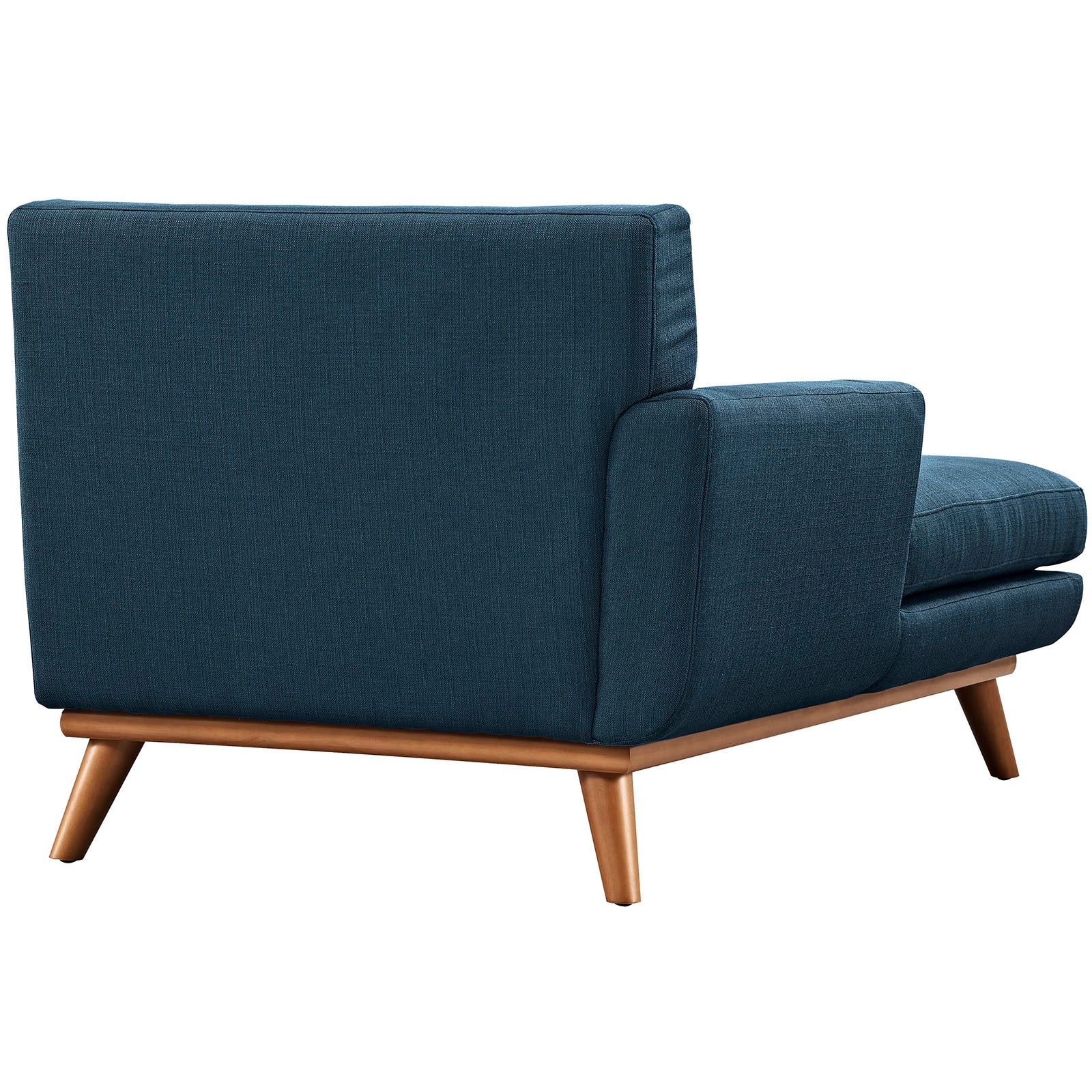 Gently sloping curves and plush chaise cushion create a favorite lounging spot. Whether relaxing after a long day at work, settling in with coffee and brunch, or entering a spirited discussion with friends, the Engage left-arm chaise is a welcome presence in your home. Two tufted buttons create eye-catching appeal, adding depth that brings your seating décor to center stage. Rubberwood legs and frame supply a solid base to this quality upholstered fabric piece.