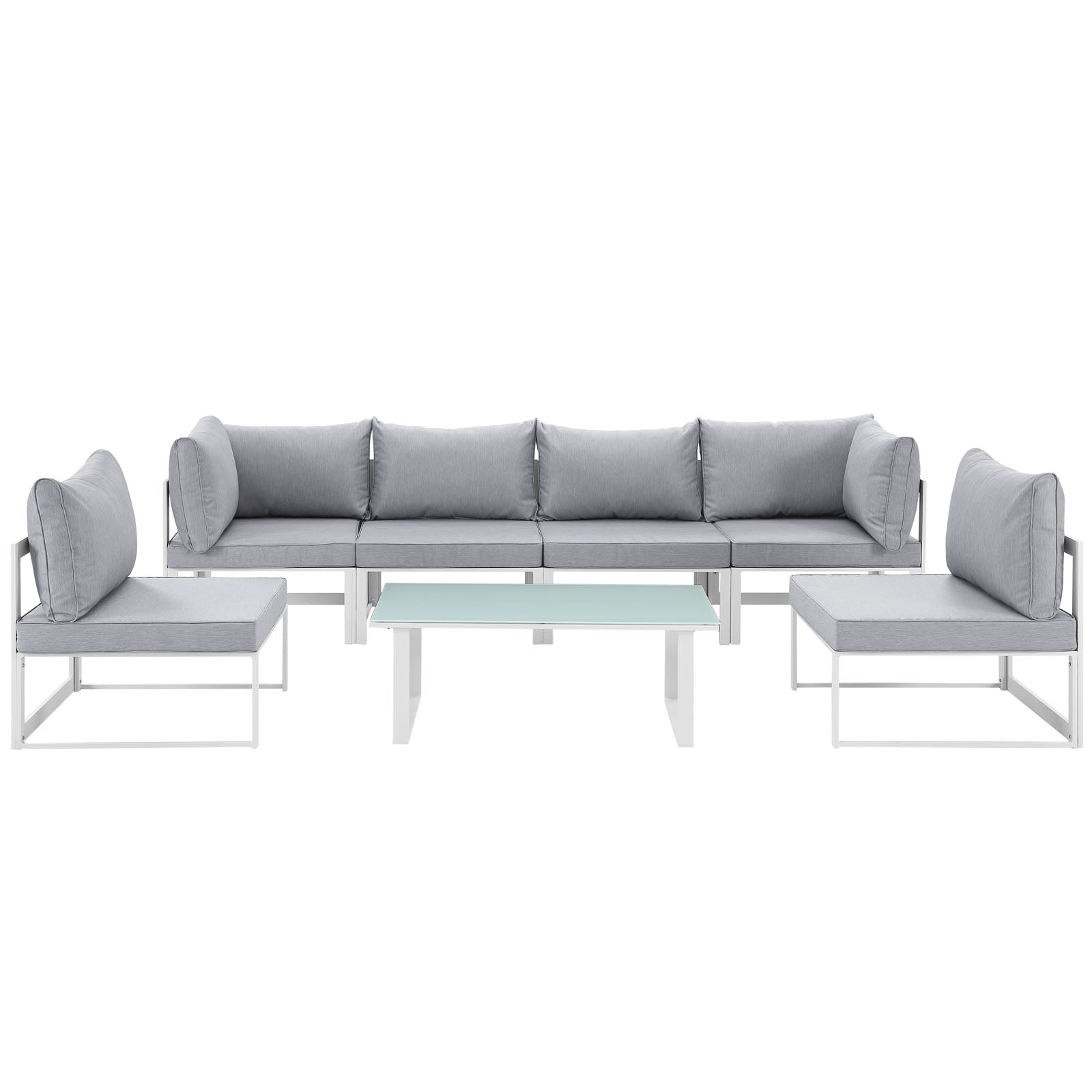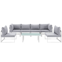 Nestled within close proximity to forests, rivers, valleys, and the Pacific Ocean rests the Fortuna Outdoor Patio Collection. Enjoy the good life with the versatile Fortuna Patio Sectional Sofa Set in an engaging arrangement that makes it easy to enjoy conversations together with friends and family. Made of powder-coated aluminum with all-weather polyester cushions, Fortuna Outdoor Patio Sofa Set appeals to the modern palate without overwhelming the senses. This installment of the Fortuna Outdoor Series is a 7 piece patio sectional sofa furniture set perfect for contemporary patios, backyards, poolside, and other outdoor lounge areas.