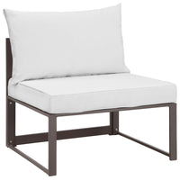 Nestled within close proximity to forests, rivers, valleys, and the Pacific Ocean rests the Fortuna Outdoor Patio Collection. Enjoy the good life with the versatile Fortuna Patio Armless Chair in an engaging arrangement that makes it easy to enjoy conversations together with friends and family. Made of powder-coated aluminum with all-weather polyester cushions, Fortuna Outdoor Patio Chair appeals to the modern palate without overwhelming the senses. This installment of the Fortuna Outdoor Series is an armless outdoor sofa chair perfect for contemporary patios, backyards, poolside, and other outdoor lounge areas.