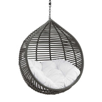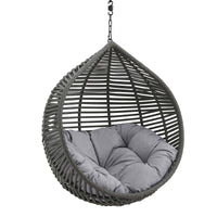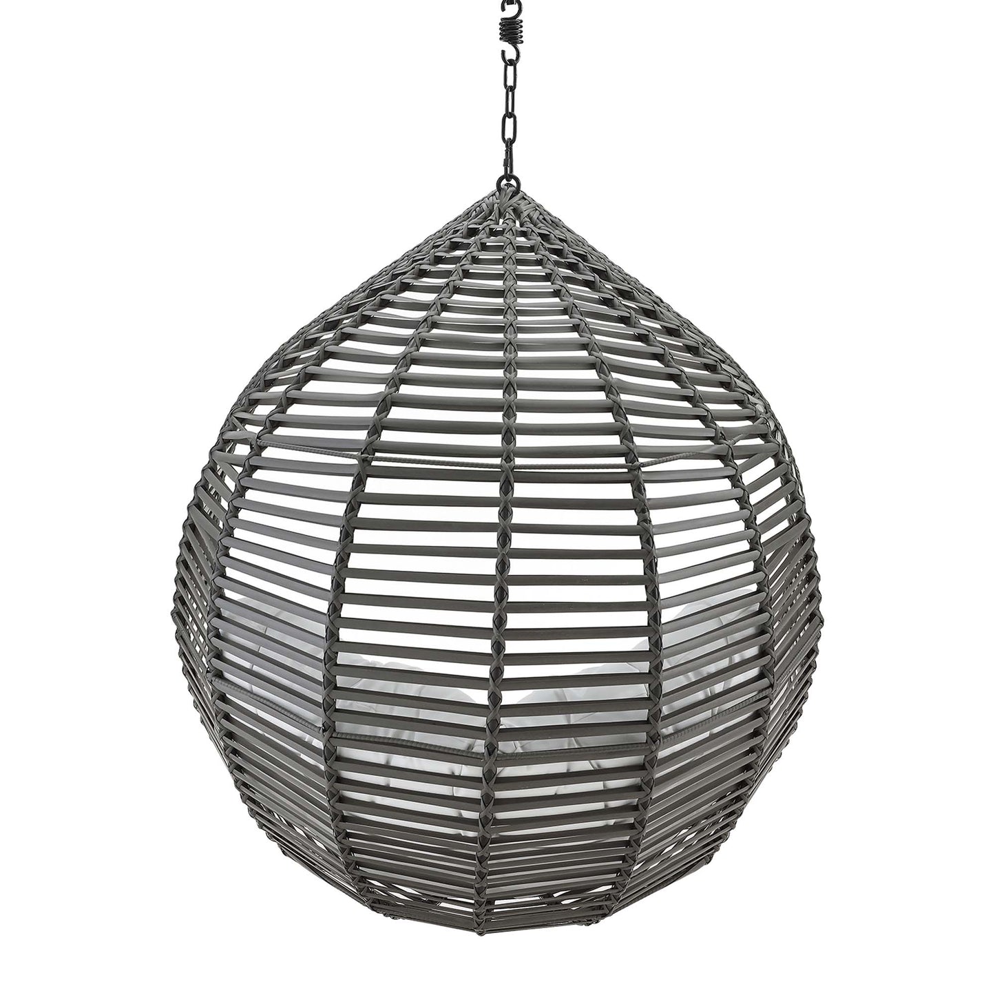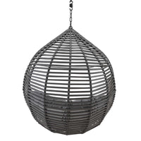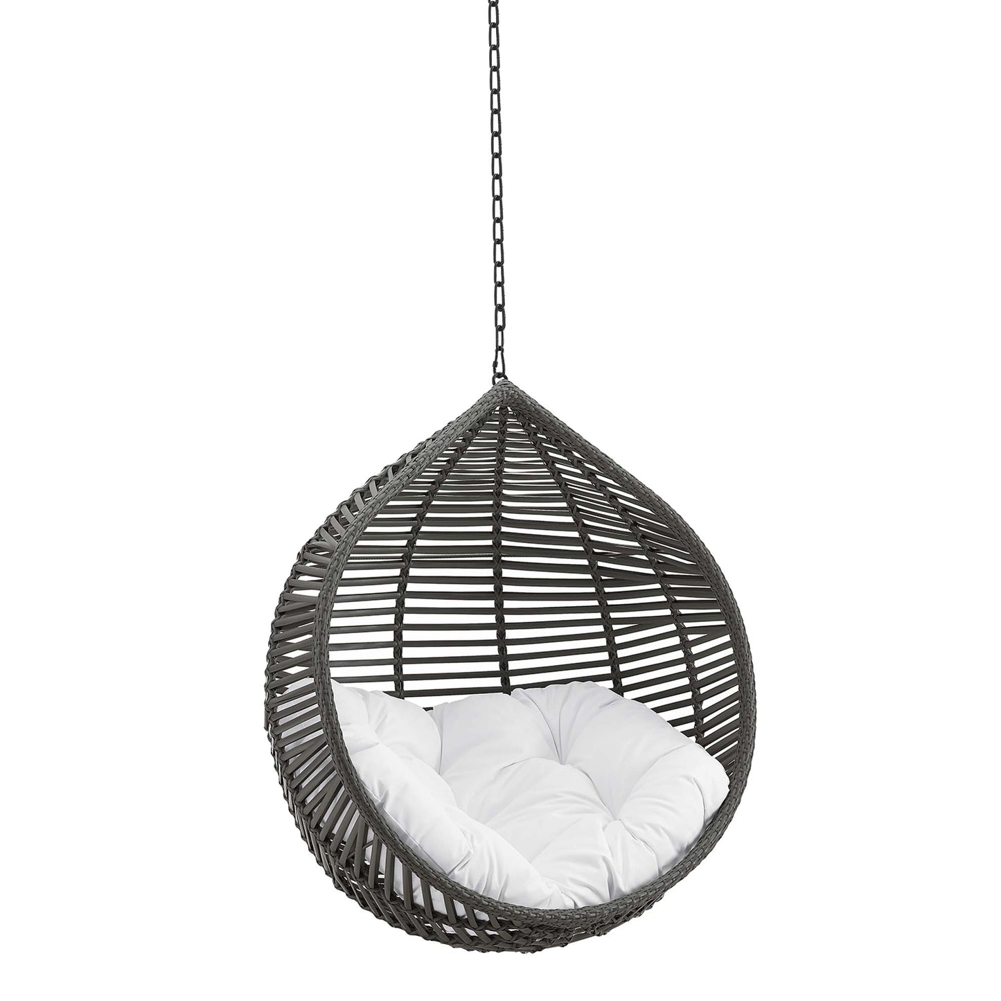 Calmly sway back and forth from the secure comfort of the Garner Teardrop Outdoor Patio Swing Chair without Stand. This stylish modern outdoor hanging chair comes with in a long-lasting PE wicker rattan weave and adjustable 78.5” inch steel chain. Complete with a soft all-weather tufted polyester fabric cushion, this versatile hanging chair is a welcome update to your deck, porch, patio, or inside your home as a fun swing chair for the bedroom or living room. Enjoy a relaxing seating experience from the comfort of this teardrop hanging chair. Chair Weight Capacity: 265 lbs.