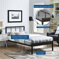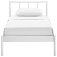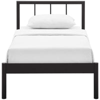 Immediately energize contemporary decor with the Gwen Twin Platform Bed. A must-have piece that makes every style choice harmonious, Gwen eliminates the need for a box spring, and admirably supports mattress types such as memory foam, spring, latex, and hybrid. Designed to complement your modern decor, the Gwen platform bed is solidly built a powder coated steel frame, non-marking foot caps, and supports up to 1323 pounds. Mattress not included.