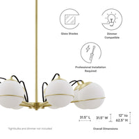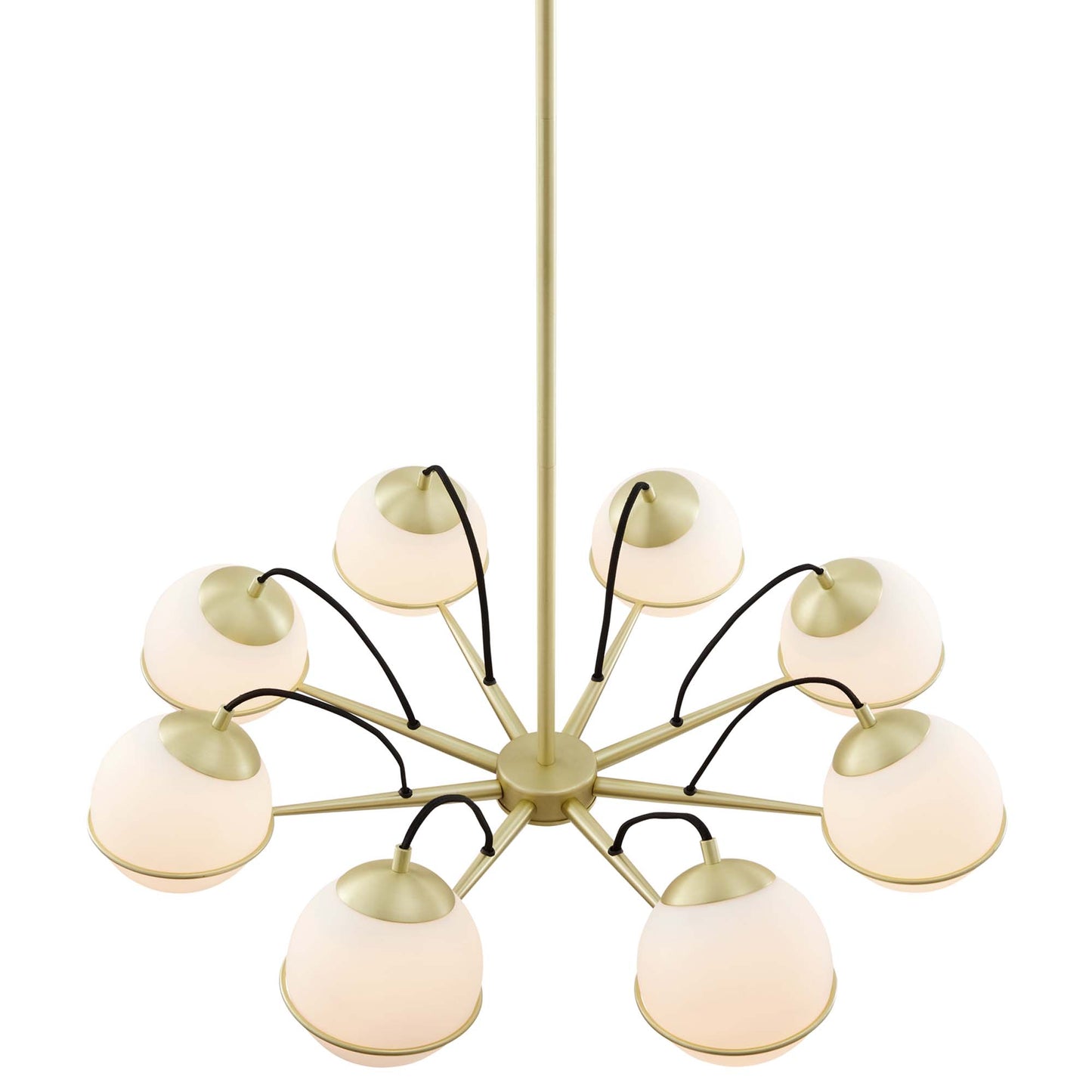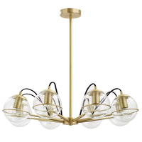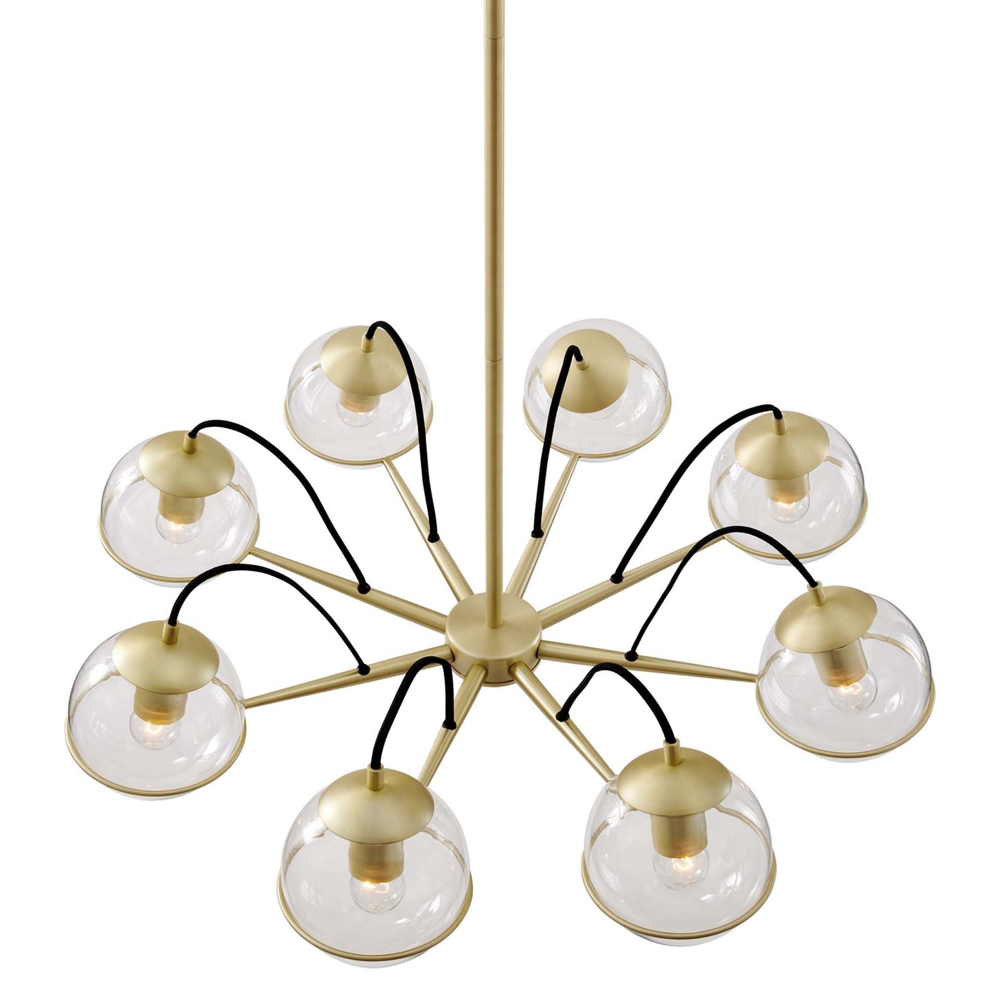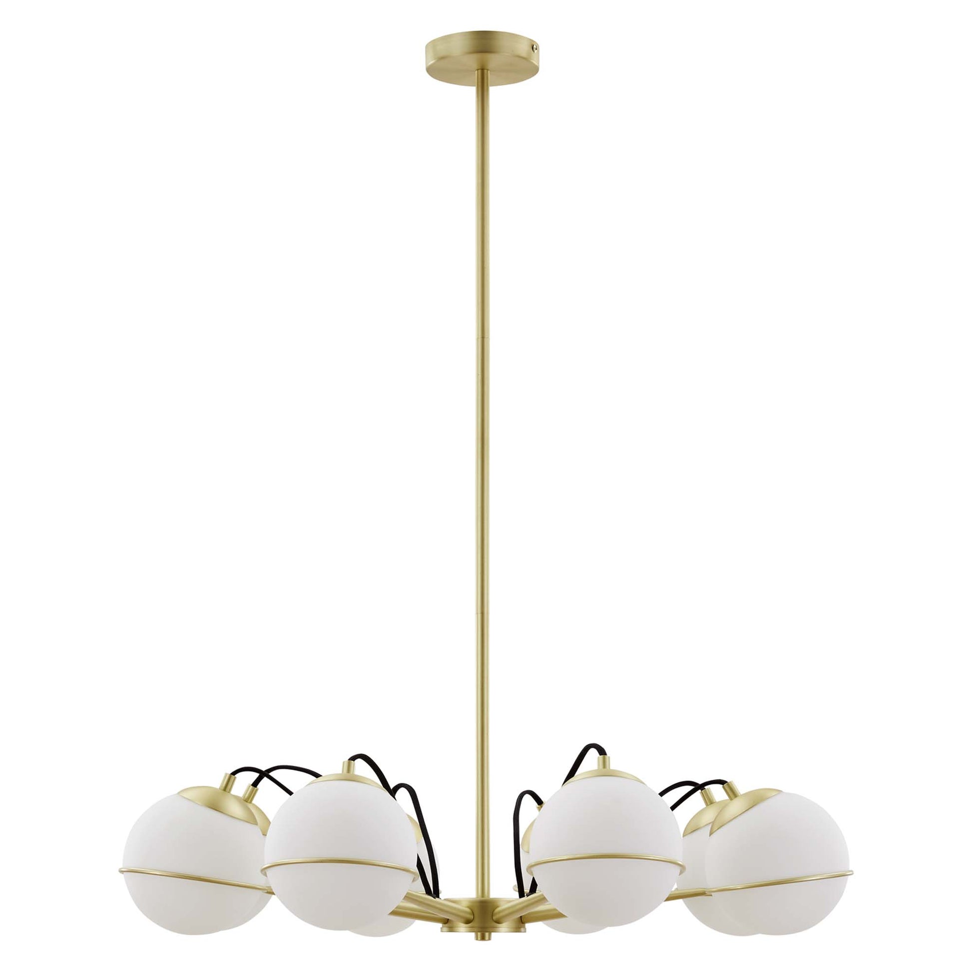 The Hanna 8-Light Chandelier brings relaxed grandeur into your living, bedroom, dining room, or kitchen. The organic intrigue of this satin brass chandelier delights as much as it illuminates. Glass globes suspended in satin brass rings extend from a star-shaped constellation of rods and convey movement and light in this enchanting hanging light fixture. This globe chandelier requires professional installation and is compatible with dimmer switches (not included). Hanna Pendant Light requires 8 E26 bulbs, 25W max, G45, or LED equivalent (not included).