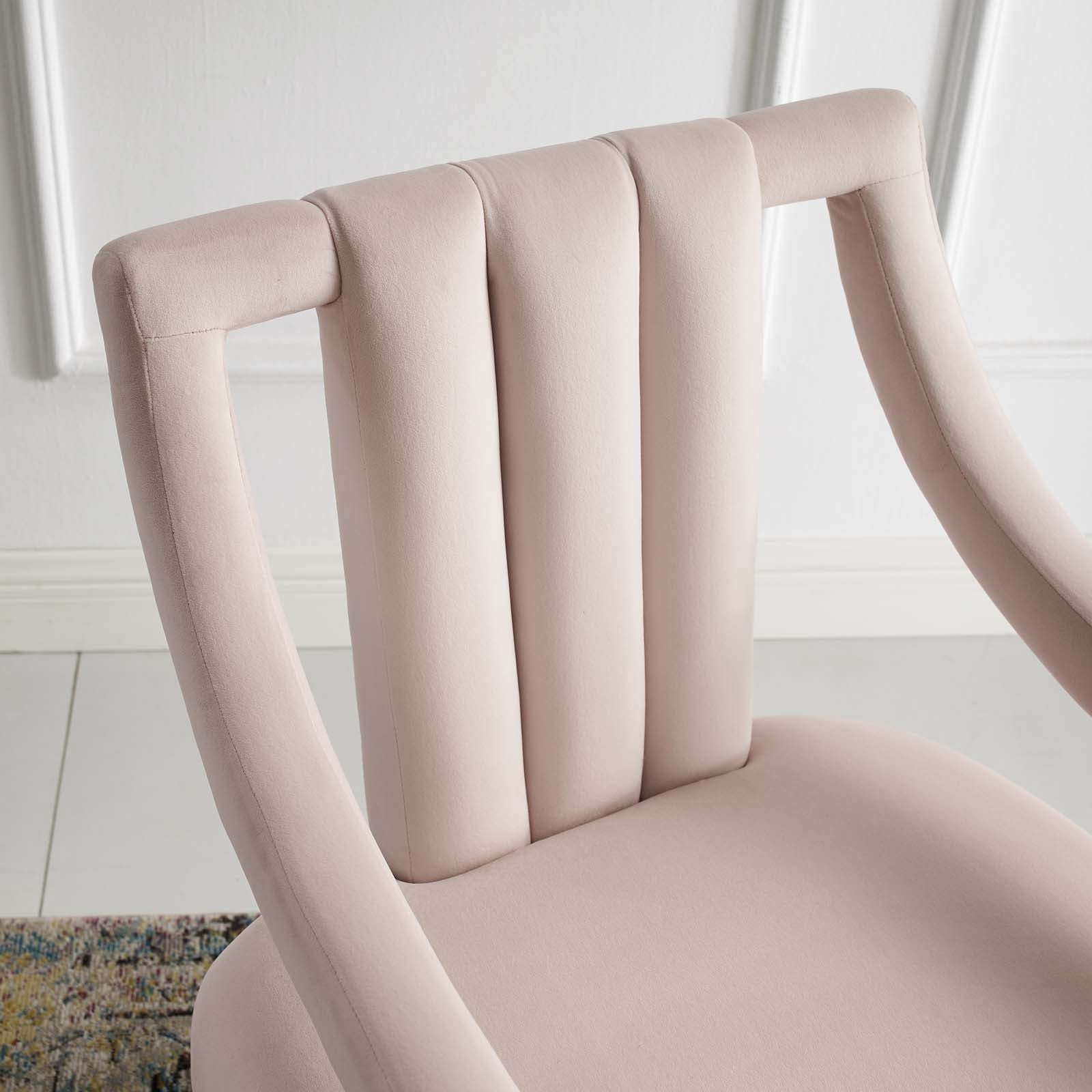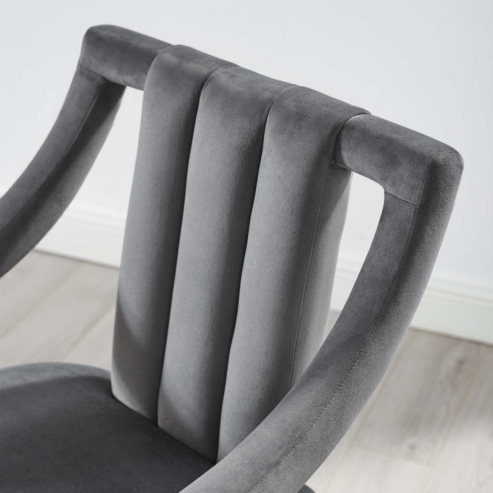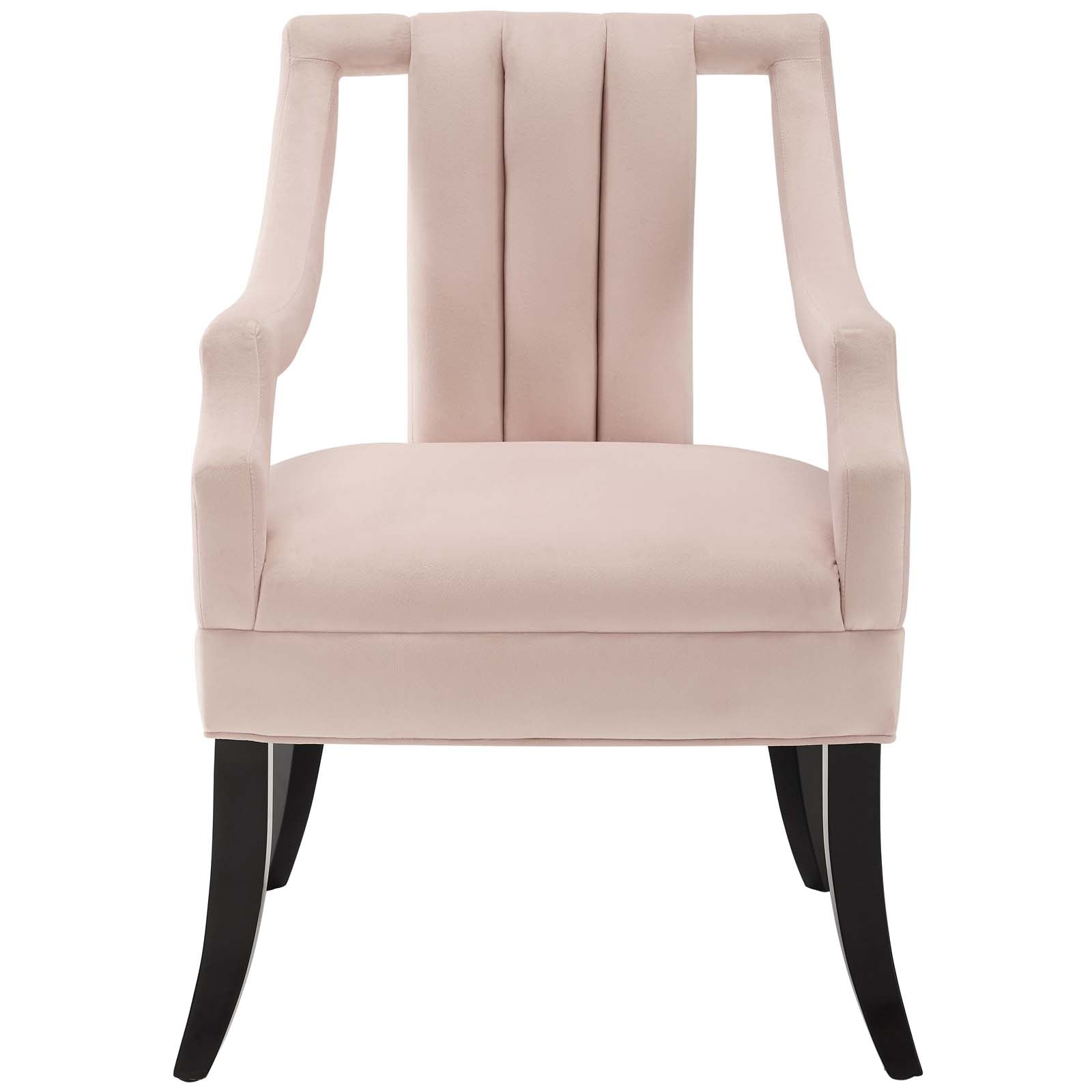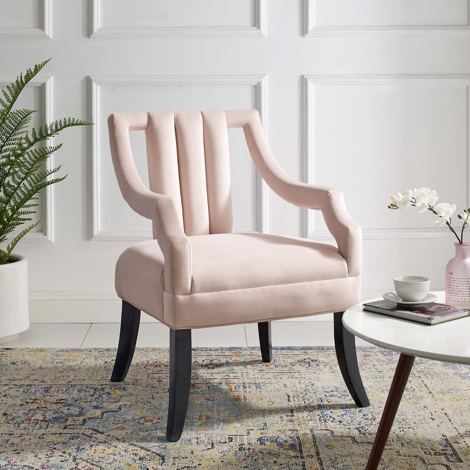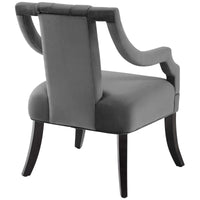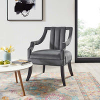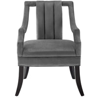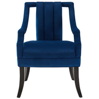 Embrace lively conversation with the Harken Accent Chair. Sloped armrests meet a cut-away vertical tufted backrest for a decor update that adds vintage glamour to any space. Harken comes upholstered in stain-resistant performance velvet upholstery, with dense foam padding, and black-stained birch wood legs with non-marking foot caps and a sinuous spring support system that provides gentle give. Harken's versatile design makes it the perfect accent chair to complement your living room, lounge area, entryway, bedroom, or home office.