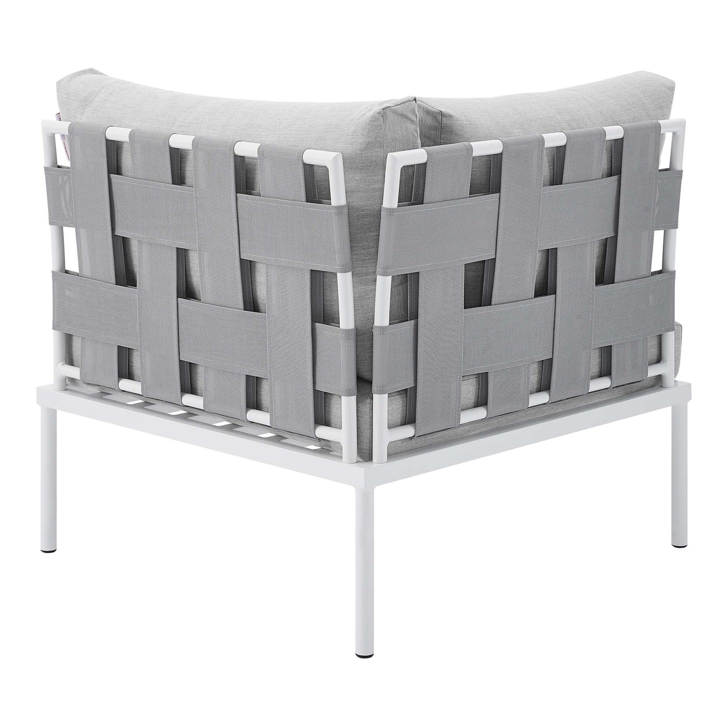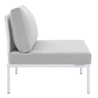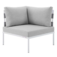 Engage life with Harmony. Enjoy casual conversation under the open sky with an all-weather waterproof furniture set that delivers an exceptional outdoor porch, patio, balcony or garden experience. An exceptional modern furniture set that exceeds expectations, Harmony comes with long-lasting machine washable Sunbrella® cushions, soft and durable polyester Textiline® panels, square powder coated aluminum bases, tempered glass top tables, and non-marking foot caps. A sectional that arranges according to the spontaneous needs of your guests, set your sights on open and inspired moments with the Harmony Outdoor Patio Collection. Set Includes: 3 Corner Chairs, 2 Armless Chairs, 1 Coffee Table