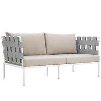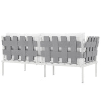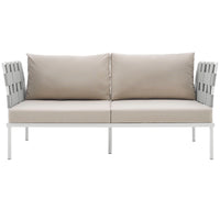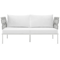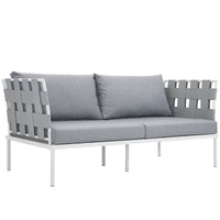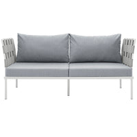Engage life with Harmony Outdoor Patio 64” Loveseat. Enjoy casual conversation under the open sky with an all-weather waterproof outdoor two seater sofa from a versatile furniture set that delivers an exceptional outdoor porch, patio, balcony or garden experience. An exceptional modern outdoor furniture set that exceeds expectations, Harmony Patio Loveseat comes with silk polyester seat back weave, square powder coated aluminum bases, and non-marking foot caps. An outside loveseat that arranges according to the spontaneous needs of your guests, set your sights on open and inspired moments with the Harmony Outdoor Patio Collection.