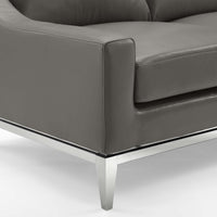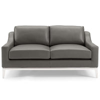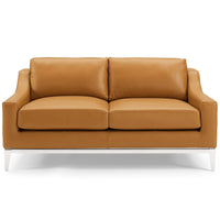 Center your space with the Harness 64" Leather Loveseat. Featuring soft leather upholstery, Harness comes with two dense foam padded seat cushions, two supportive cotton-filled back pillows, a sinuous spring support system, and a polished stainless steel frame with non-marking foot caps. Perfect for the living room, bedroom, meeting room or recreation area, this streamlined two-seater sofa loveseat fuses modern intrigue with timeless appeal for a sleek low-profile loveseat that completes the look of any vintage or contemporary modern home or apartment. Cushions remove for easy cleaning. Loveseat Weight Capacity: 600 lbs.
