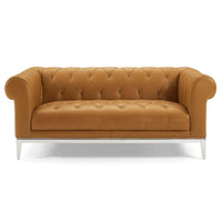 Rollick in the luxurious expanse of the Idyll Leather Chesterfield Loveseat. Featuring soft leather upholstery, rolled arms and tufted button accent details, dense foam padding, and a sinuous spring system for responsive support, Idyll creates a lushly comfortable seating environment that invites lingering conversations and leisure time. This 70-inch loveseat comes with elegant leather upholstery in this designer loveseat sure to become the focal point of your home. Supported by a sturdy polished stainless steel frame, enhance your living room decor with the timeless look of this vintage loveseat. Weight Capacity: 600 lbs.