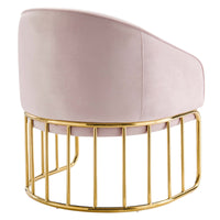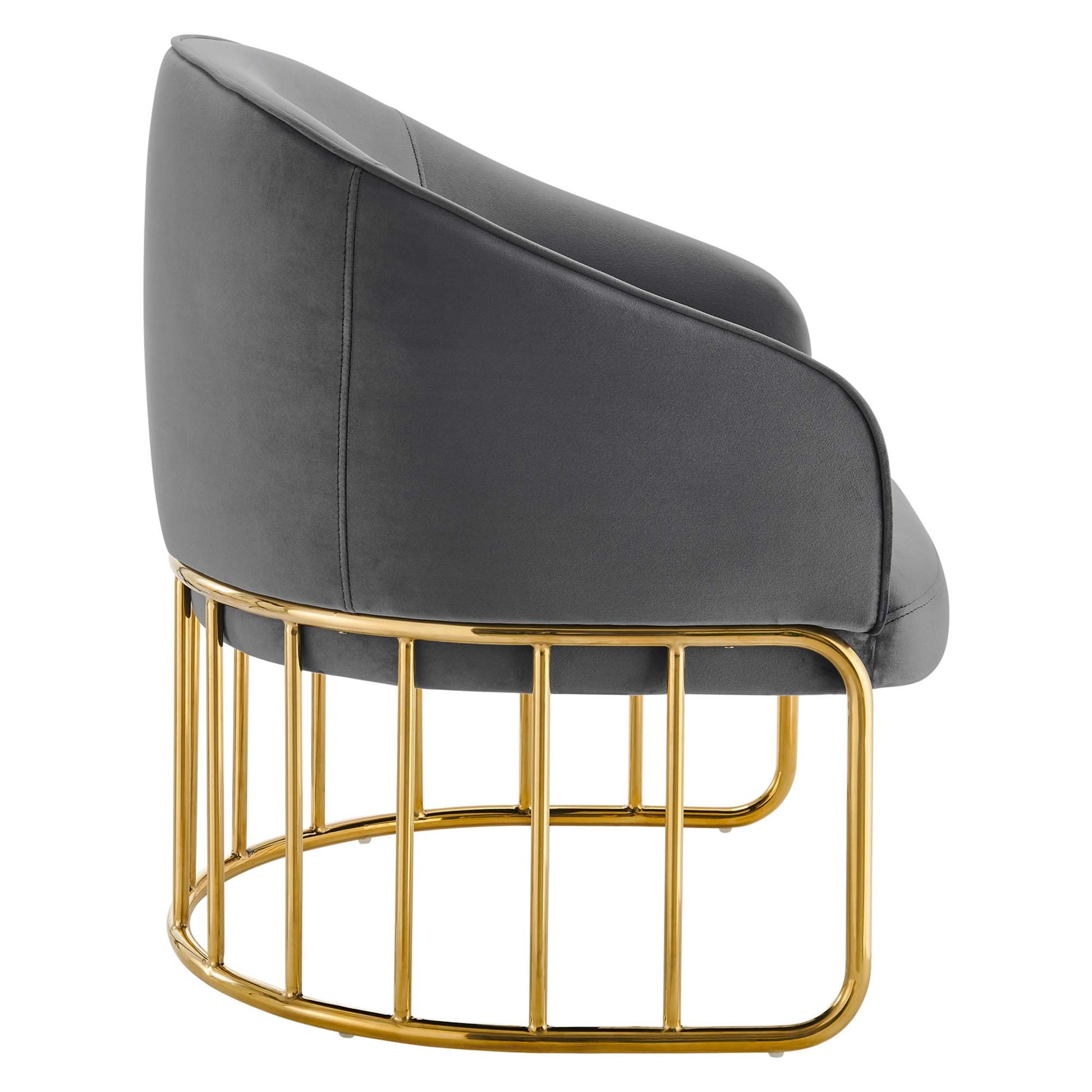 Introduce spirited retro-glam style into your mid-century modern or eclectic living room with the Legacy Performance Velvet Armchair. The welcoming arc of this velvet armchair's backrest is nestled in a curved gold-plated stainless steel base with vertical stretchers, creating an alluring silhouette in your entryway, dining room, or lounge space. This retro-glam accent chair makes a cozy reading corner in your bedroom. Dense foam padding and a webbed support system unite for essential comfort and durability, making the Legacy Velvet Armchair a long-lasting piece in your home. This mid-century armchair is outfitted with stain-resistant performance velvet upholstery and non-marking foot glides to protect your floors. Weight Capacity: 331 lbs