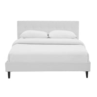 Inspire sweet dreams with the Linnea Platform Bed. Charmingly designed with grace and distinction, Linnea comes with a padded vinyl base, tufted vinyl headboard, solid wood legs, and a slatted wood support system that eliminates the need for a box spring. Complete with a reinforced center beam with supporting legs for maximal stability, Linnea accommodates the various mattress types on the market such as memory foam, spring, latex, and hybrid. Imparting a heartening chic-luxe look, Linnea is a well-made bed perfect for the instant update or bedroom transformation. Weight capacity up to 1300 lbs. Mattress Not Included.