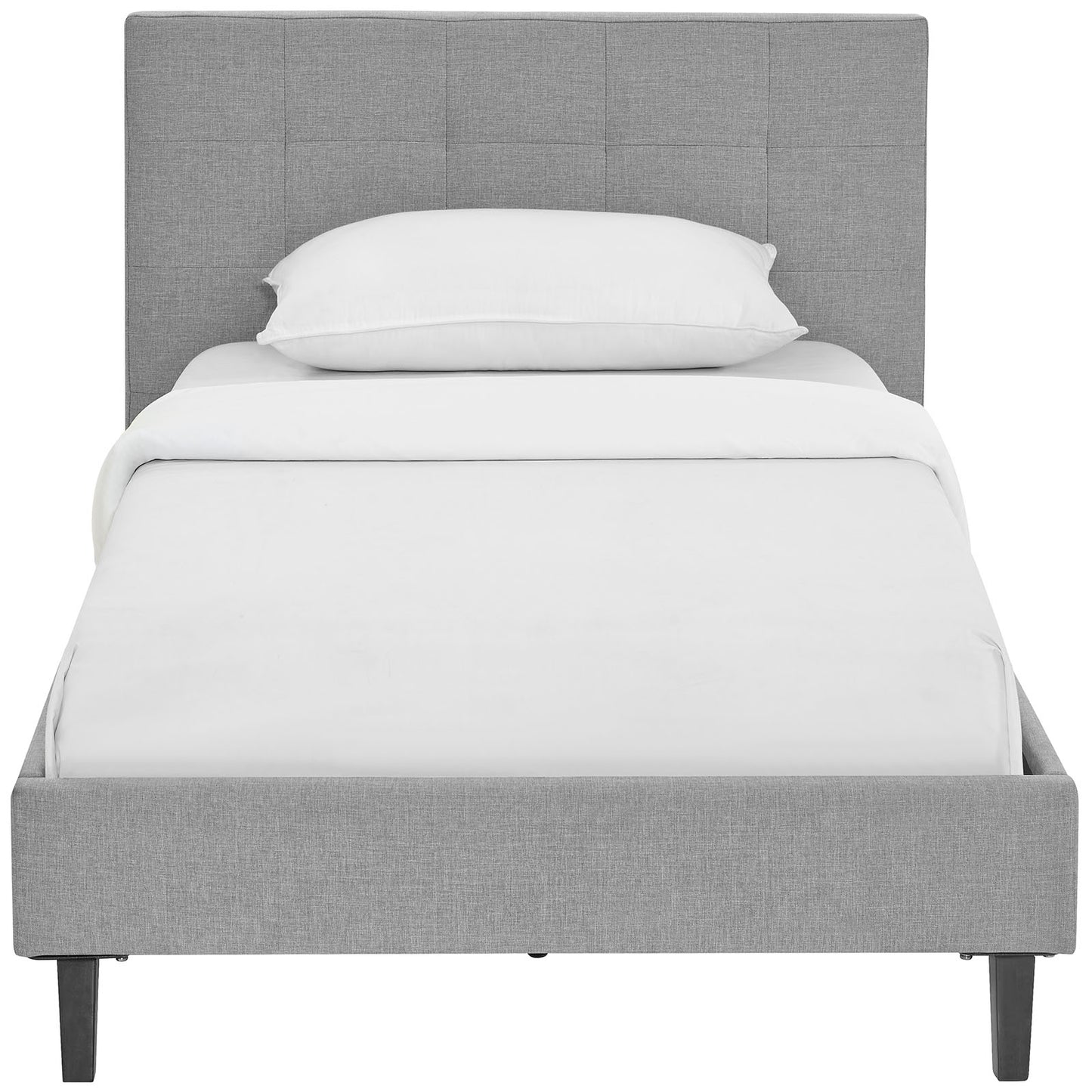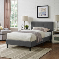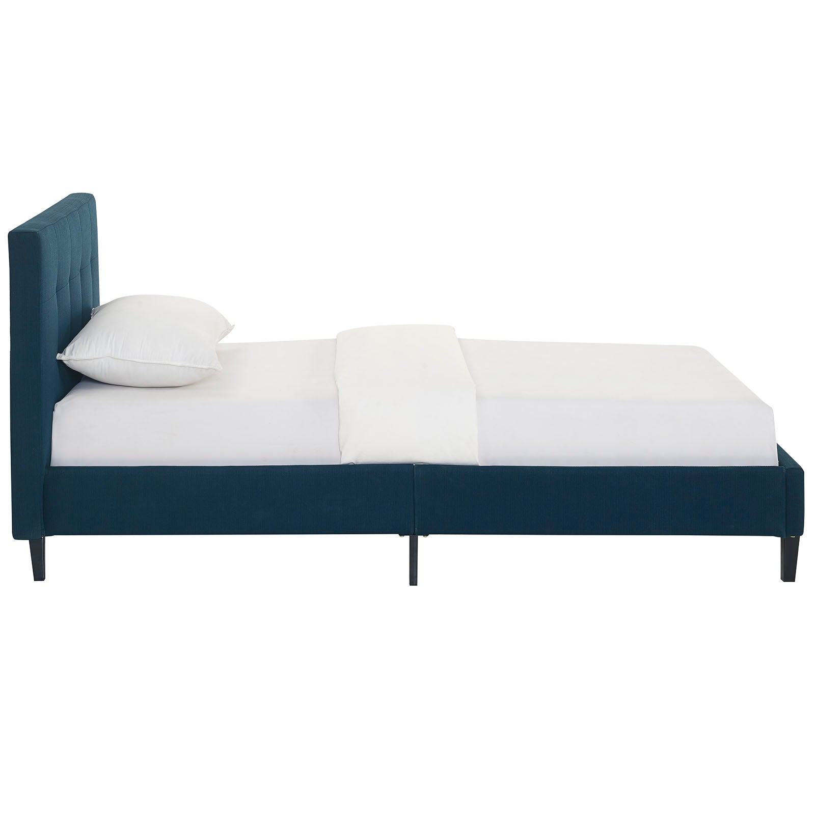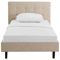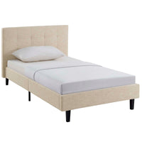 Inspire sweet dreams with the Linnea Platform Bed. Charmingly designed with grace and distinction, Linnea comes with an upholstered polyester fabric base and tufted headboard, solid wood legs, and a slatted wood support system that eliminates the need for a box spring. Complete with a reinforced center beam with supporting legs for maximal stability, Linnea accommodates the various mattress types on the market such as memory foam, spring, latex, and hybrid. Imparting a heartening chic-luxe look, Linnea is a well-made bed perfect for the instant update or bedroom transformation. Weight capacity up to 1300 lbs. Mattress Not Included.