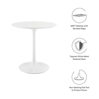 Let modern inspiration flow while gathered around the Lippa 28" Round Dining Table. Perfect for entertaining family and friends or everyday dining, this pedestal table comfortably seats two. Its round tabletop is crafted with MDF with a high gloss finish and beveled edge for a contemporary yet timeless design. Embodying an iconic mid-century silhouette, this pedestal dining table floats on a sleek tapered metal pedestal base with a chip-resistant lacquered finish. Includes non-marking felt pad to protect flooring. Assembly required.