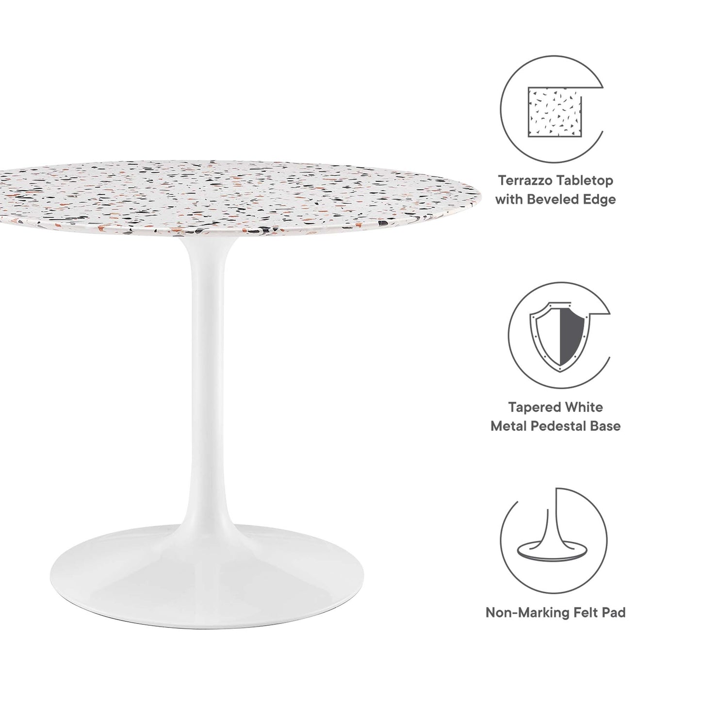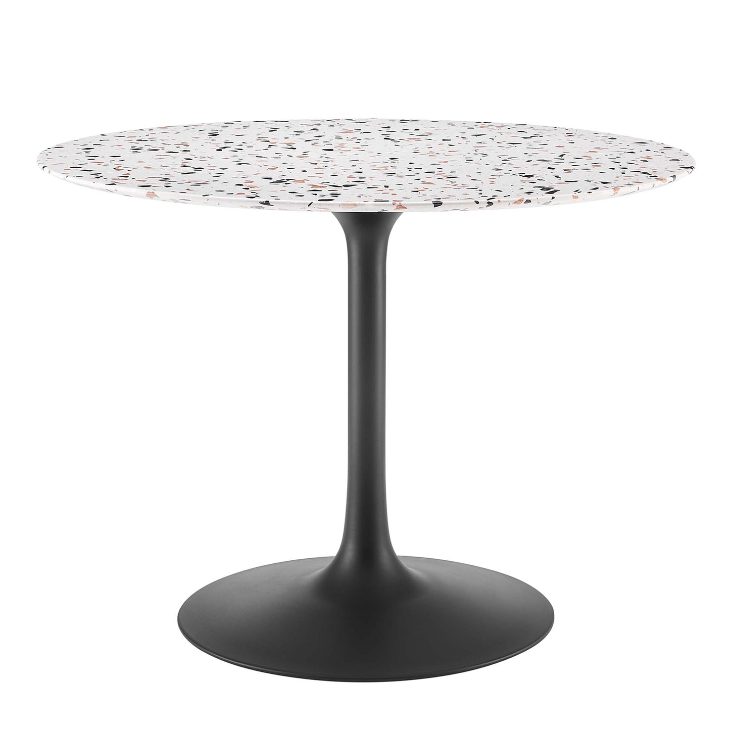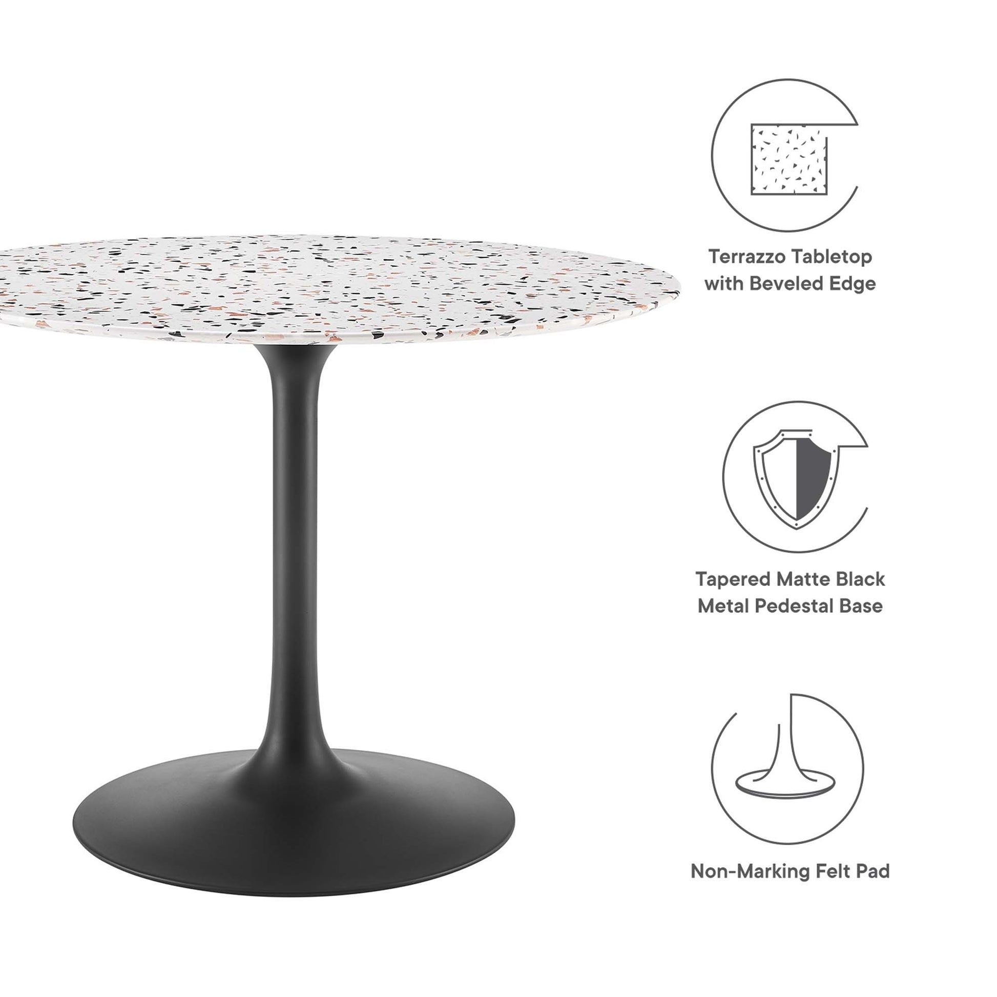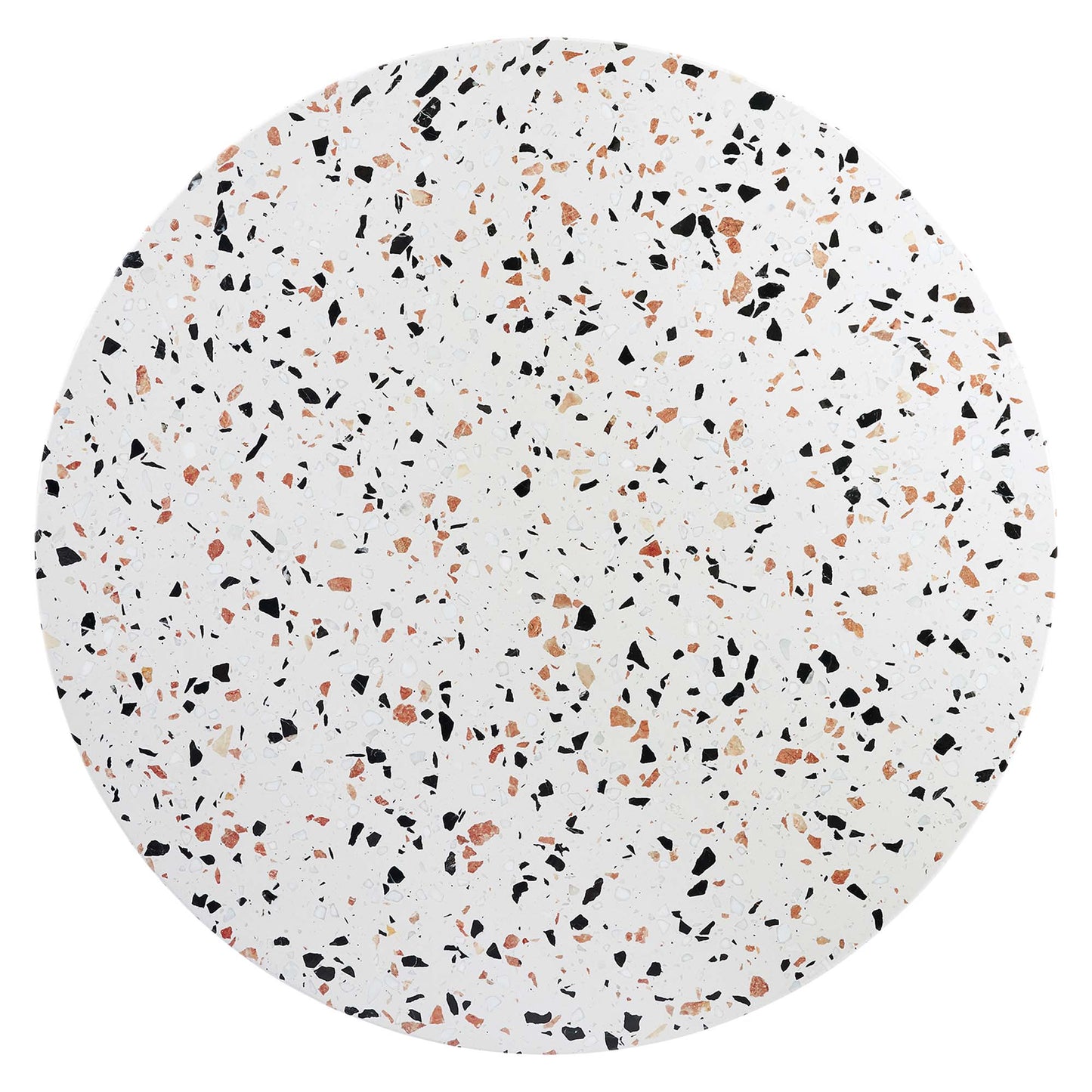 Let modern inspiration flow while gathered around the Lippa 40" Round Terrazzo Dining Table. Perfect for entertaining family and friends or everyday dining, this pedestal table comfortably seats two. Its round tabletop features a terrazzo construction and beveled edge for a contemporary yet timeless design. Embodying an iconic mid-century silhouette, this pedestal dining table floats on a sleek tapered metal pedestal base with a chip-resistant finish. Includes non-marking felt pad to protect flooring. Assembly required.