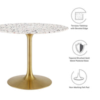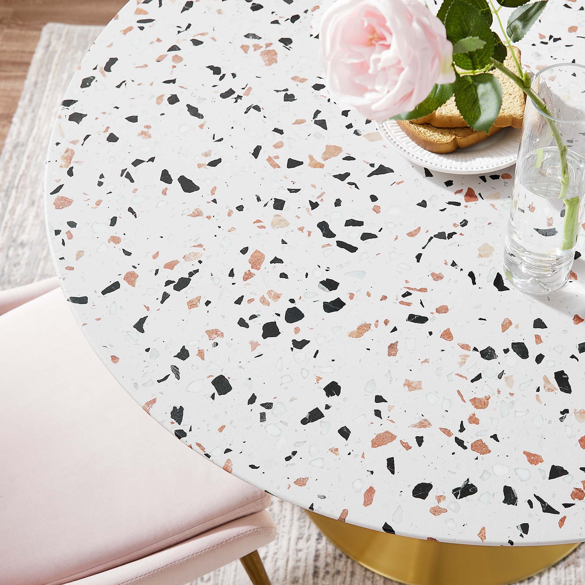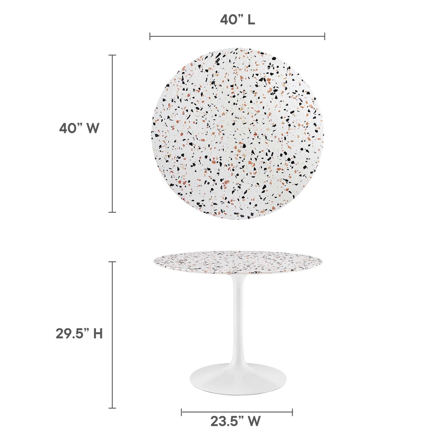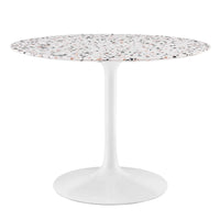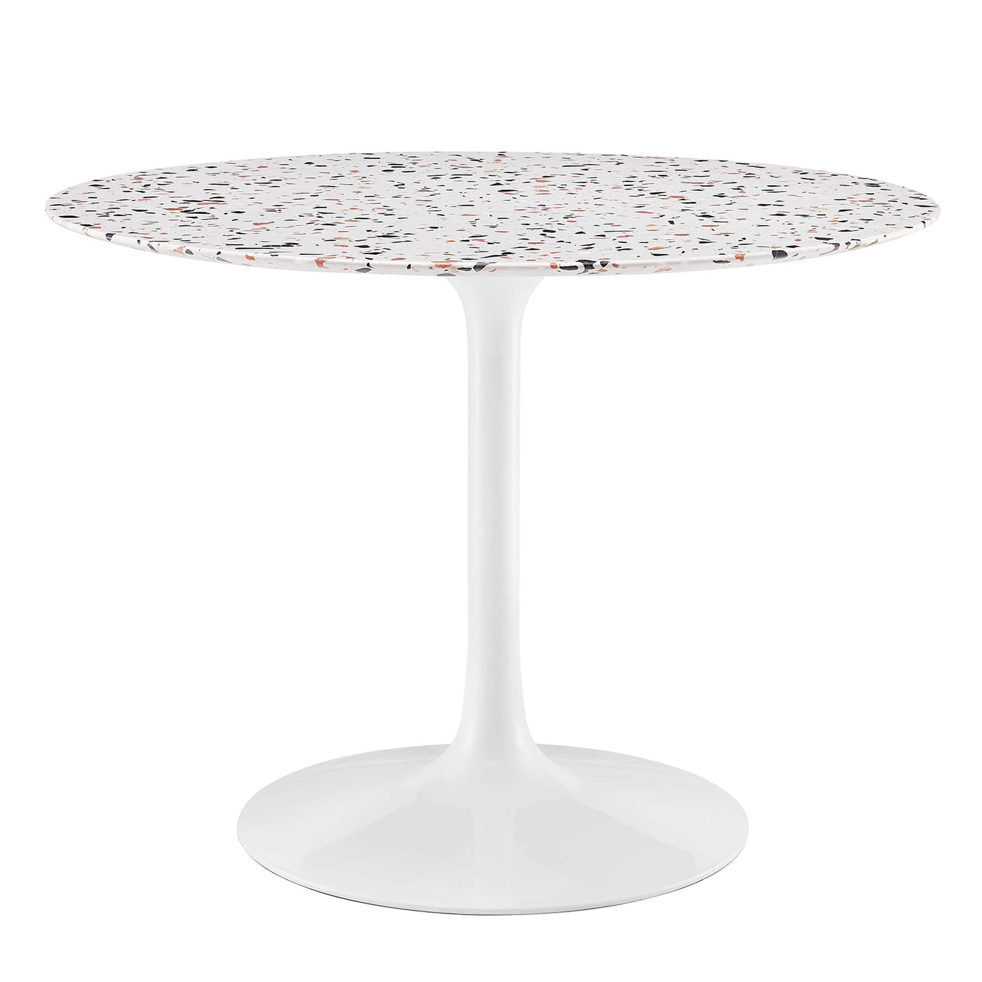 Let modern inspiration flow while gathered around the Lippa 40" Round Terrazzo Dining Table. Perfect for entertaining family and friends or everyday dining, this pedestal table comfortably seats two. Its round tabletop features a terrazzo construction and beveled edge for a contemporary yet timeless design. Embodying an iconic mid-century silhouette, this pedestal dining table floats on a sleek tapered metal pedestal base with a chip-resistant finish. Includes non-marking felt pad to protect flooring. Assembly required.