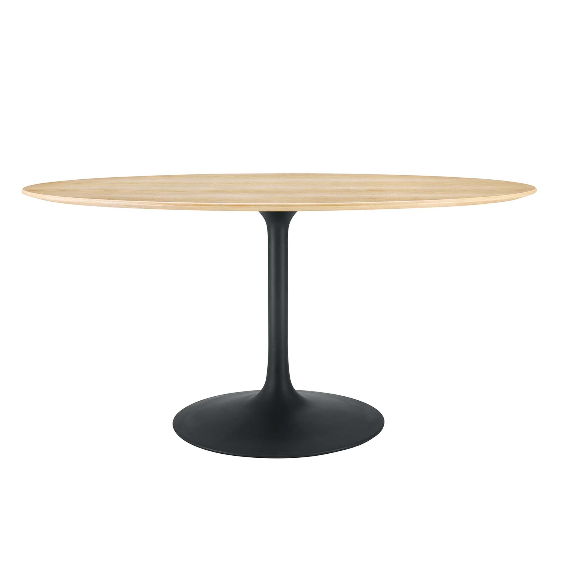 Let modern inspiration flow while gathered around the Lippa 60" Oval Dining Table. Perfect for entertaining family and friends or everyday dining, this pedestal table comfortably seats six. Its oval tabletop is crafted with MDF with a wood veneer and beveled edge for a contemporary yet timeless design. Embodying an iconic mid-century silhouette, this pedestal dining table floats on a sleek tapered metal pedestal base with a chip-resistant lacquered finish. Includes non-marking felt pad to protect flooring. Assembly required.