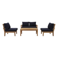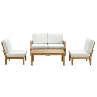 Harbor your greatest expectations with this luxurious solid teak wood outdoor set. Marina has a seating arrangement perfect for every member of your crew as you breathe the fresh, crisp air of a day spent with friends and family. Known for its natural ability to withstand extreme weather conditions, teak is the wood selection of choice for long-lasting outdoor furnishings. Now you can enjoy Marina’s durable construction and all-weather cushions, alongside a modern design that persistently looks new and welcoming. Zoom in on the product image before you, and see the exquisite texture and detail for yourself.