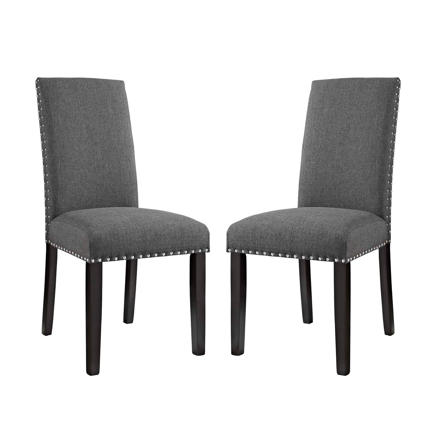 Wrap up moments of quality seating with the Parcel dining chair. Finely upholstered in polyester with a nail-head trim, dense foam padding, and solid wood legs, Parcel delivers a concise offering that enhances the dining experience in a subtle and unassuming way. Assembly Required.