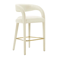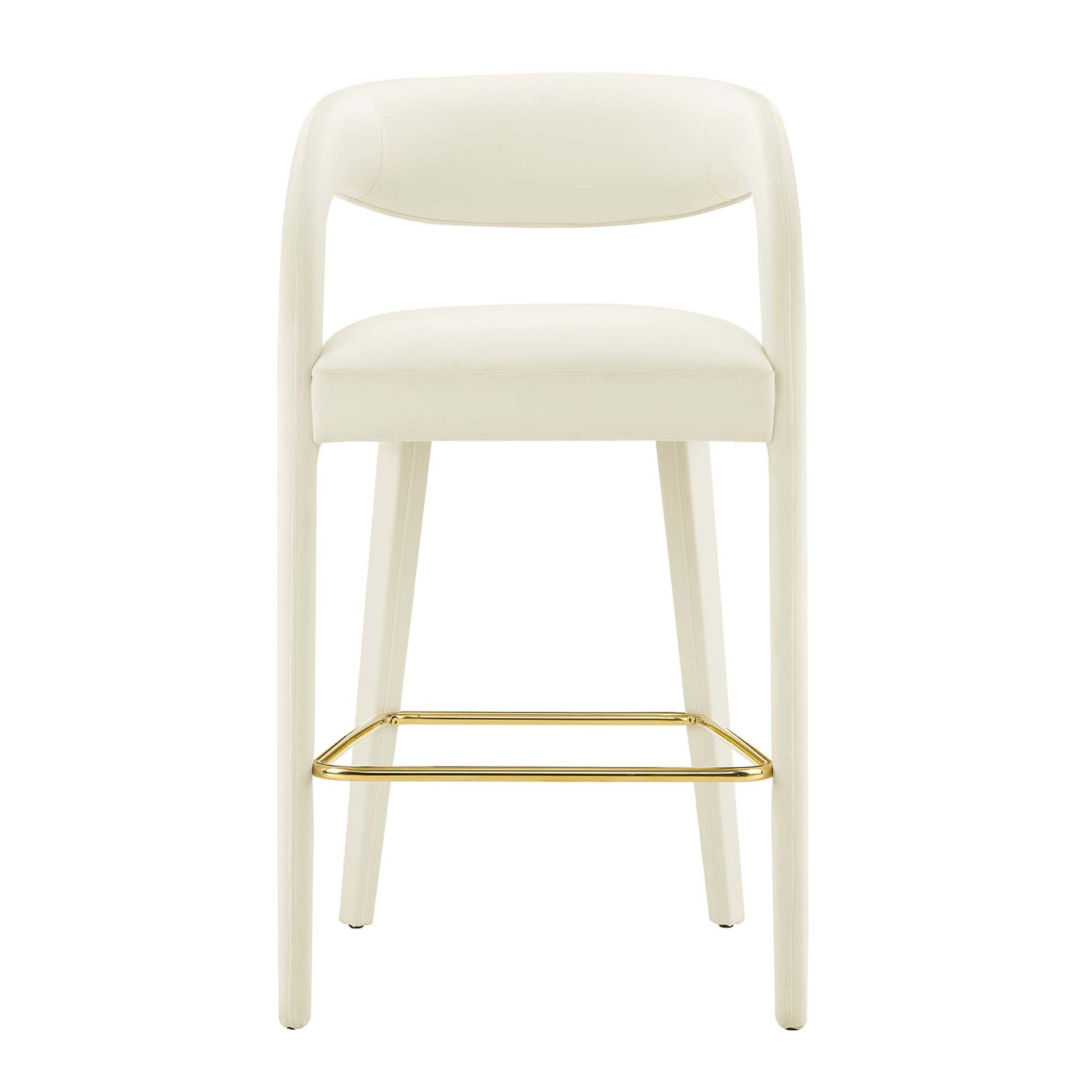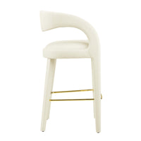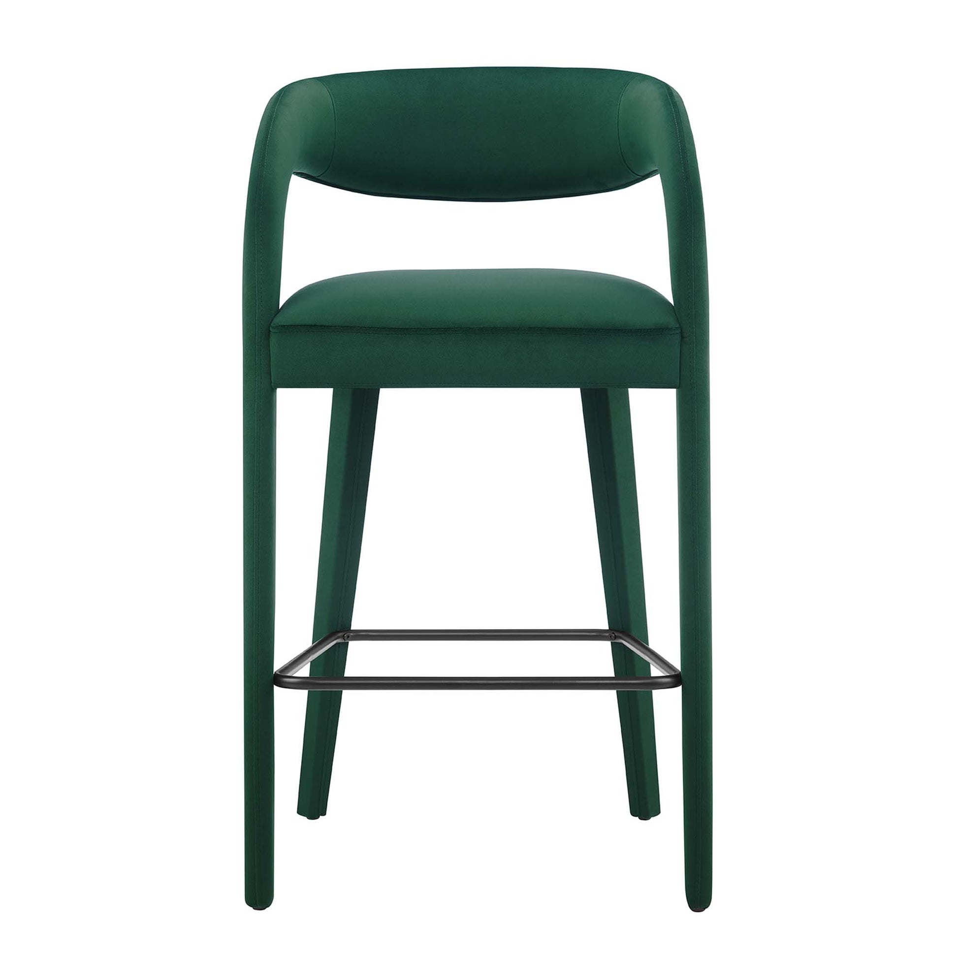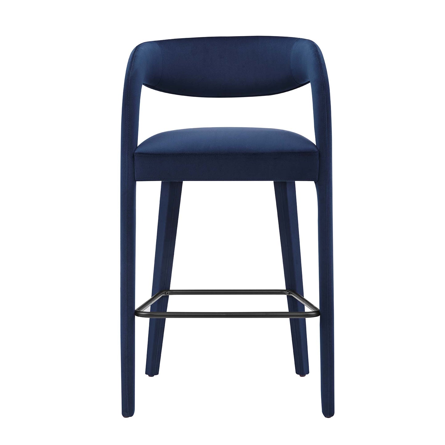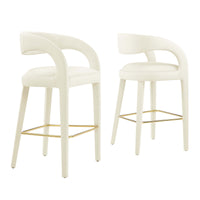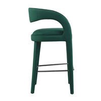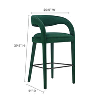 Experience the perfect blend of modern sophistication and luxurious comfort with the Pinnacle Performance Velvet Upholstered Bar Stool Set of Two. The distinct silhouette showcases a curved backrest and an open design that effortlessly enhances your dining space or kitchen area with luxe style. This bar-height stool set indulges your senses with its dense foam padding, upholstered in a tactile, stain-resistant performance velvet fabric. Non-marking plastic foot pins ensure your flooring remains free from scuffs and scratches. With minimal assembly needed, this bar stool set not only offers a stylish statement but also a hassle-free setup. Weight Capacity: 330 lbs.