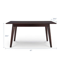 • Overall Dining Table Dimensions: 47"L x 29.5"W x 29.5"H