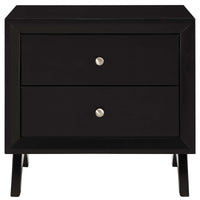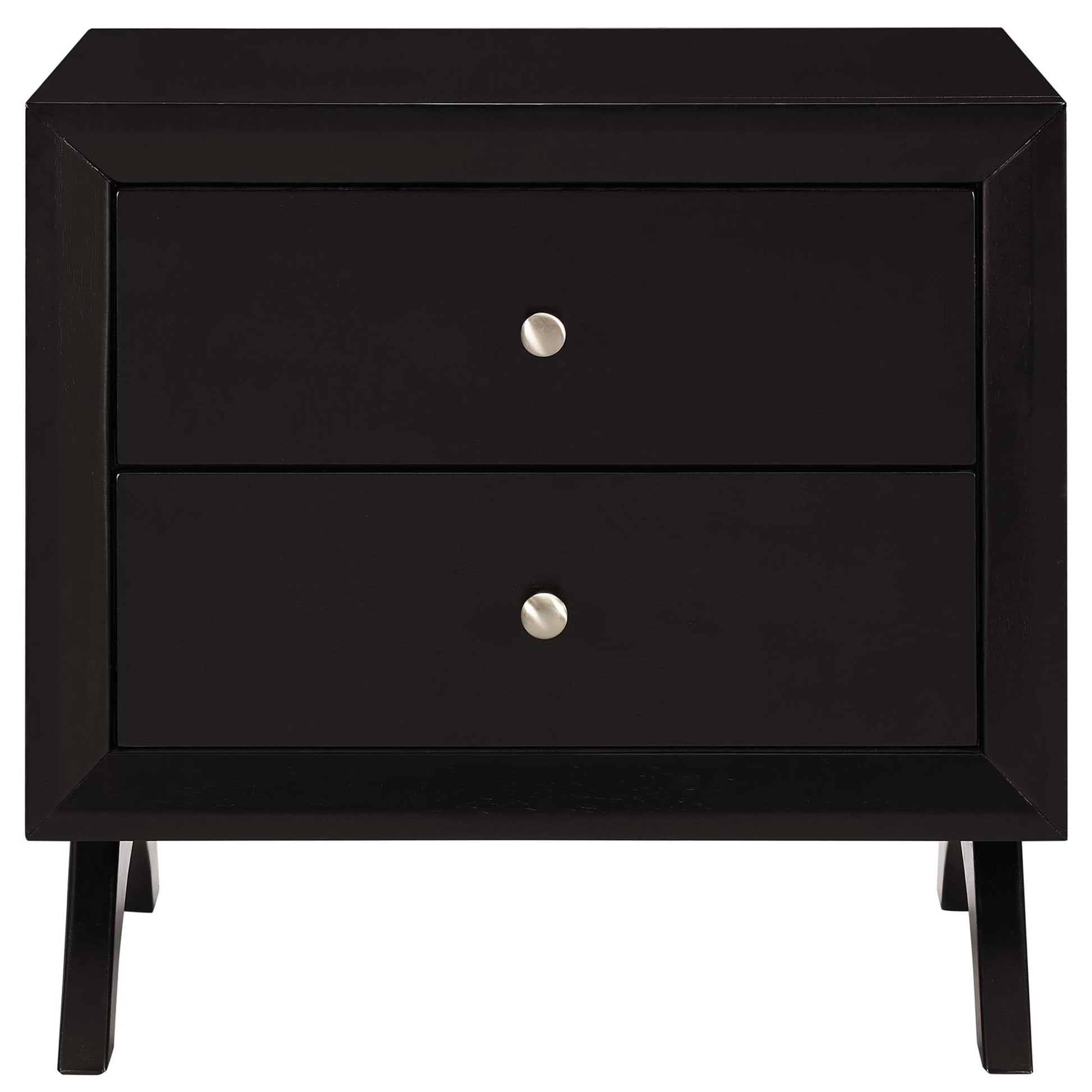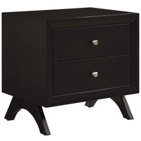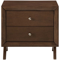 Introduce retro style and contemporary flair to a guest suite, master bedroom, or living room with the Providence Nightstand or End Table. Crafted with solid rubberwood and durable MDF, Providence boasts linear detail, elegantly tapered legs with non-marking foot caps, polished silver metal knobs, and a rich wood grain veneer that embodies classic mid-century design. The two full-extension glide drawers grant spacious, concealed storage. Display and store your books, pictures, and bedtime essentials with this contemporary modern nightstand or end table.