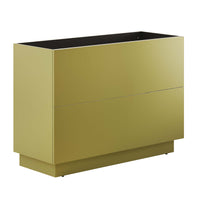 Experience a harmonious blend of luxury and practicality with the Quantum 48" Bathroom Vanity Cabinet. Durably crafted from MDF and showcasing a refined gold finish, this vanity cabinet radiates sophistication and is designed for use as either a double or single sink vanity (sink basin and fixtures not included). A spacious full-glide drawer offers ample storage for bathroom essentials, complementing the sleek design. Assembly is required, promising a rewarding setup for this functional, modern vanity.