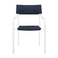 Introduce a sleek minimalist look to your outdoor furniture decor with the Raleigh 7 Piece Outdoor Dining Set. The set includes the Raleigh 59" Outdoor Patio Dining Table and six Raleigh Stackable Patio Chairs. Solidly constructed with a powder-coated aluminum frame, easy-to-clean white glazed tempered glass, and non-marking foot caps. Raleigh's foam padded seat and back come upholstered with all-weather UV resistant fabric, while a sturdy powder-coated aluminum frame creates a durable frame that is stackable for easy, compact storage. Whether gracing your patio, porch, deck, balcony, or backyard, this Raleigh Dining Set will complement your outdoor decor with ease.