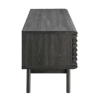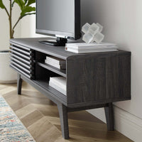 Tap into mid-century aesthetics with the Render 48” TV Stand. Render features a durable particleboard frame with smooth walnut grain laminate, four tapered wood legs, non-marking foam foot pads, and a slatted sliding door for sophisticated media storage. Complete with a cable management hole on both sides, Render’s contemporary linear style is the perfect addition to the modern living room, lounge or recreation area.