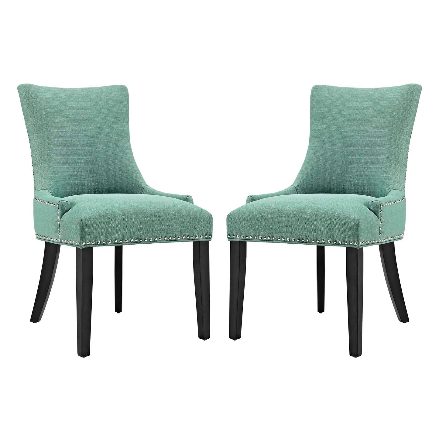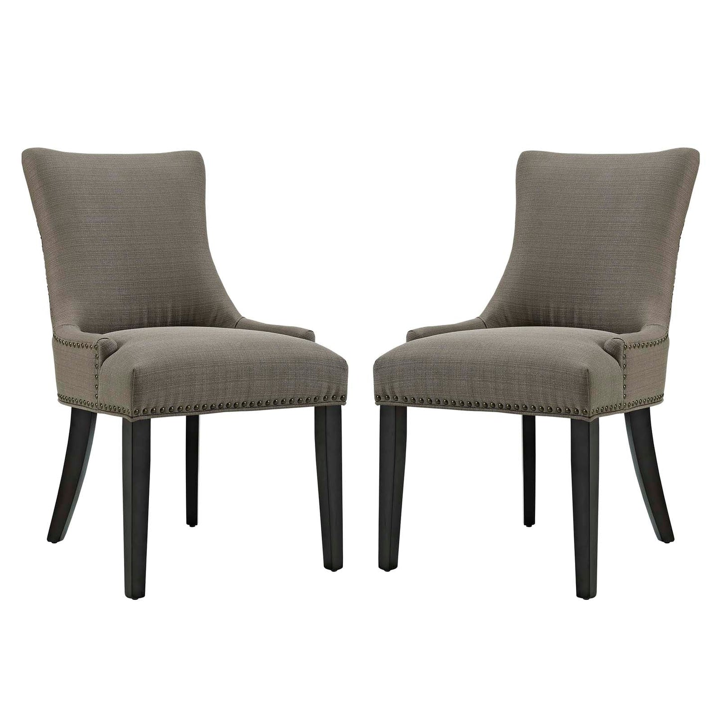 • Inspire your décor with the Marquis Dining Side Chair. Marquis is fashioned with a chic hourglass shaped back, studded nailhead trim, non-marking foot caps, tapered wood legs, and a regal seat generously padded in foam and upholstered in polyester fabric. Marquis works well in both modern and traditional dining rooms.
